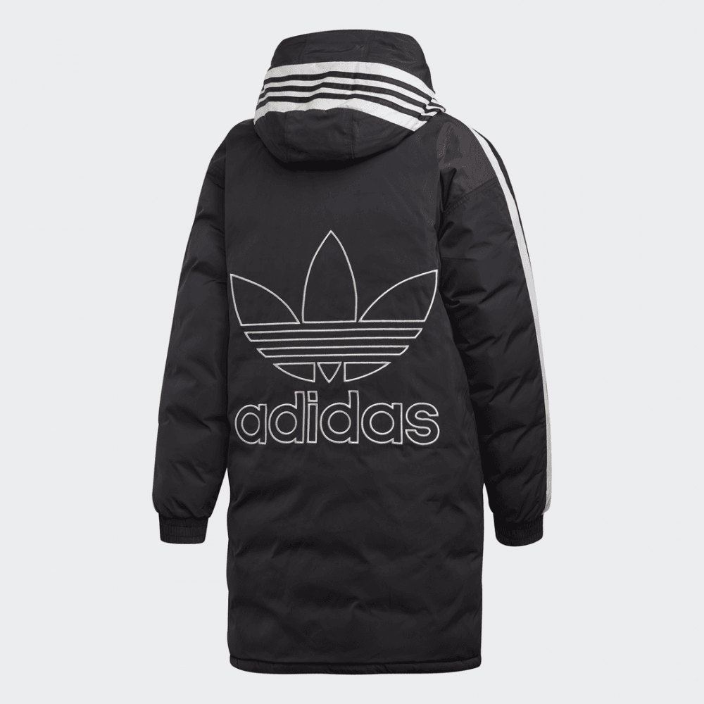 This hooded jacket gives off oversize attitude with a big Trefoil logo outline on the back. It's built to keep you cosy with a high neckline and warm insulation. To add a striking finish, 3-Stripes race from wrist to wrist, up and over the hood.