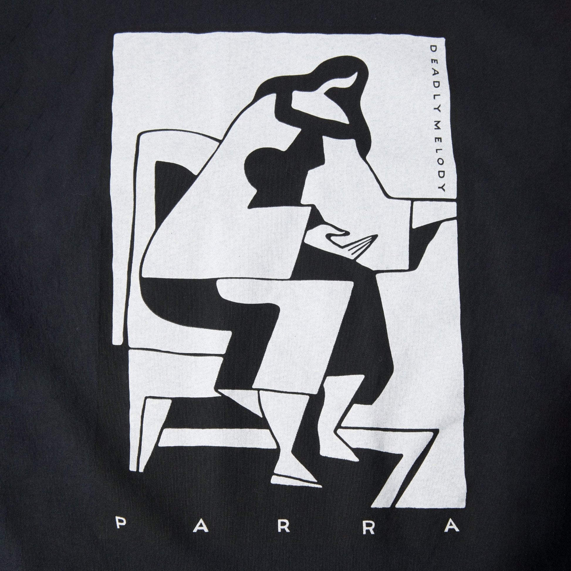 The confession artwork as a waterbased screenprint at chest. All Parra t-shirts are a boxy custom fit.