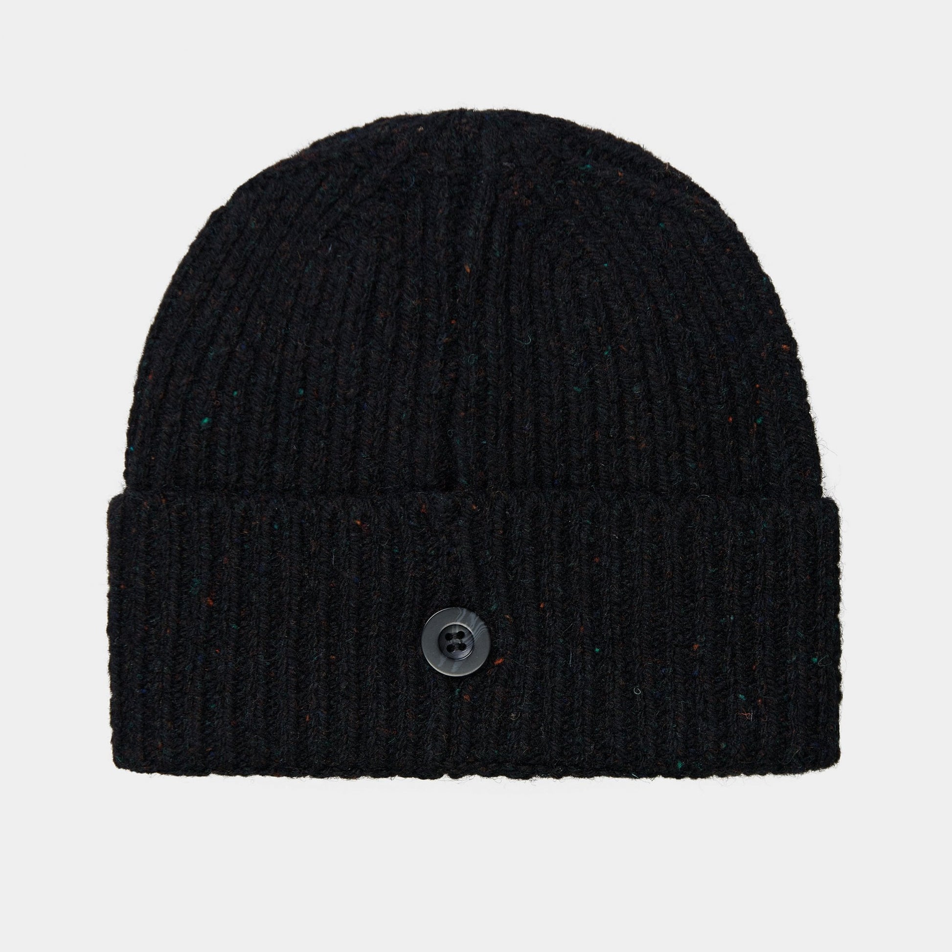 The Anglistic Beanie is knit from a tactile blend of lambswool, cotton, and acrylic yarn in a stretchy rib stitch, and features a subtly speckled look throughout. Its cuff is detailed with a woven Square Label on the front, and a fixed faux-horn button at the back.