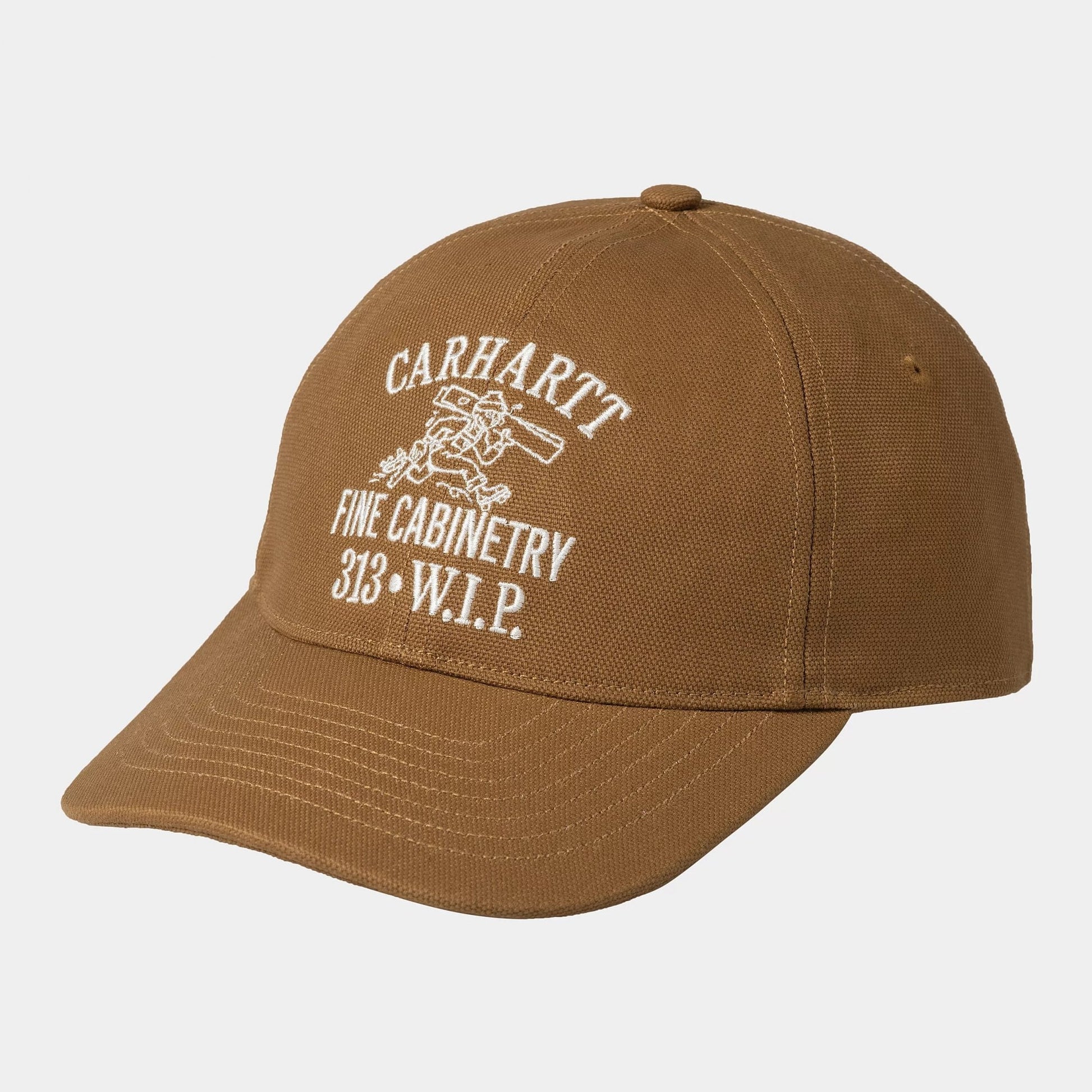 The Cabinetry Cap is an unstructured six-panel style made from heavyweight cotton Dearborn Canvas, featuring a firm, curved peak. Graphic embroidery appears on the front.