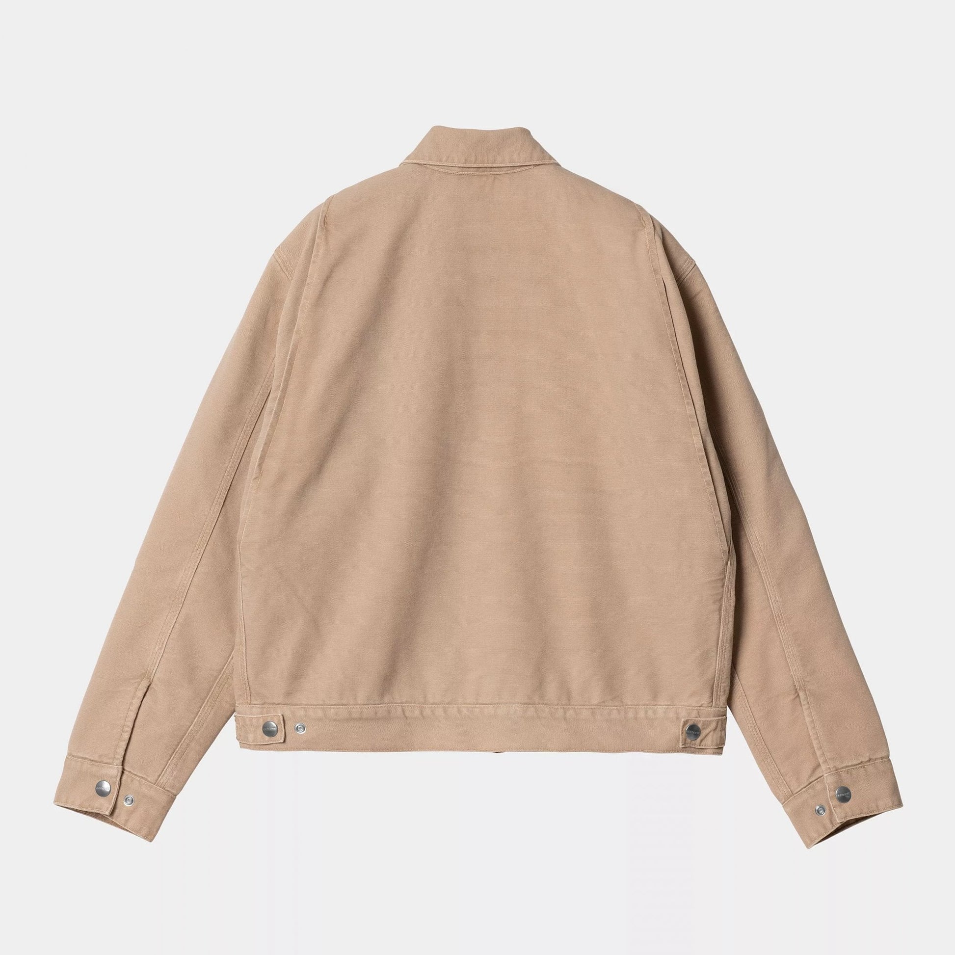 The Women's Dayton Jacket is made from heavyweight Dearborn Canvas, featuring a striped blanket lining in the body and diamond-quilted nylon in the sleeves. The item features one chest pocket, and two bottom welt pockets. An artificial leather Square Label appears at the chest.