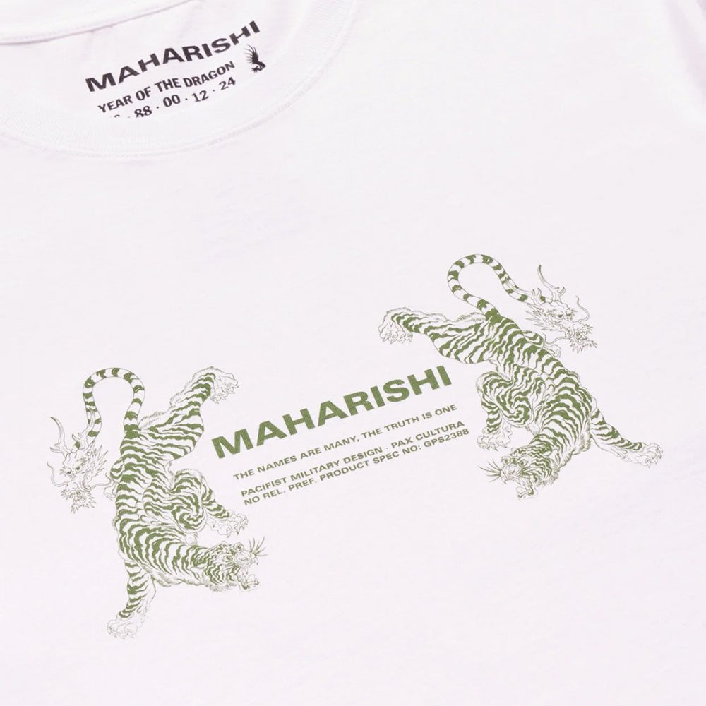 Short sleeve tee with a Maharishi MILTYPE double tigers print at the chest, crafted from organic cotton in a relaxed fit.