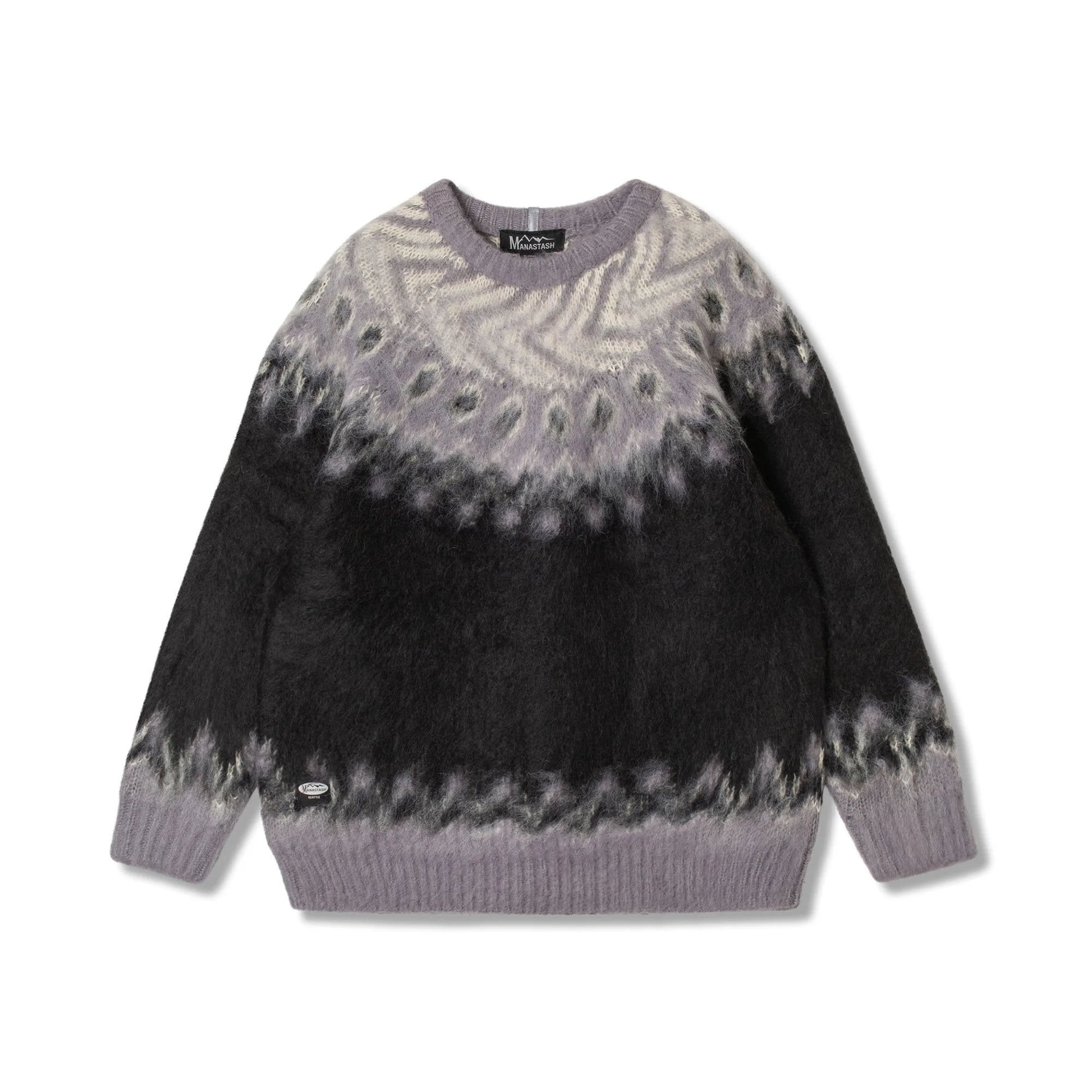 Manastash Aberdeen Knit Series. Definitely a must-have for autumn and winter; the relaxed silhouette is perfect to wear as it is , and also as a layering piece. It is constructed with acrylic, nylon, and mohair, as well as a brush finish, fluffy, warm, and shaggy. Nordic design based on our best seller Aberdeen Sweater.