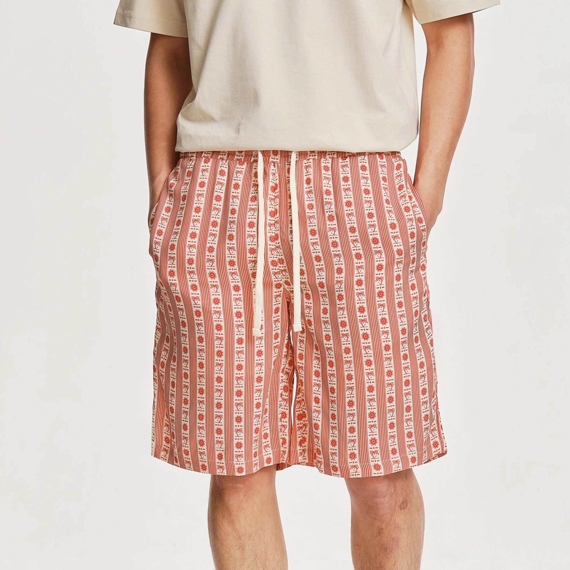 The Cruz Shorts in Terracotta. Relaxed fit shorts made from a lightweight, 100% Eco Vero Viscose with a seasonal all-over print. Featuring a drawstring waist for an adjustable fit, two slash pockets and a back welt pocket. Detailed with a woven branded label.