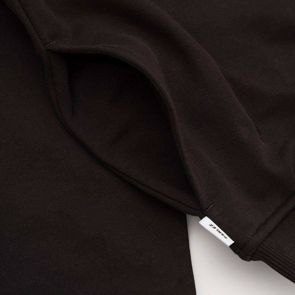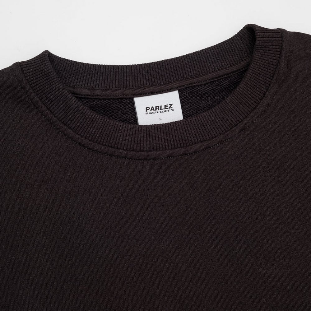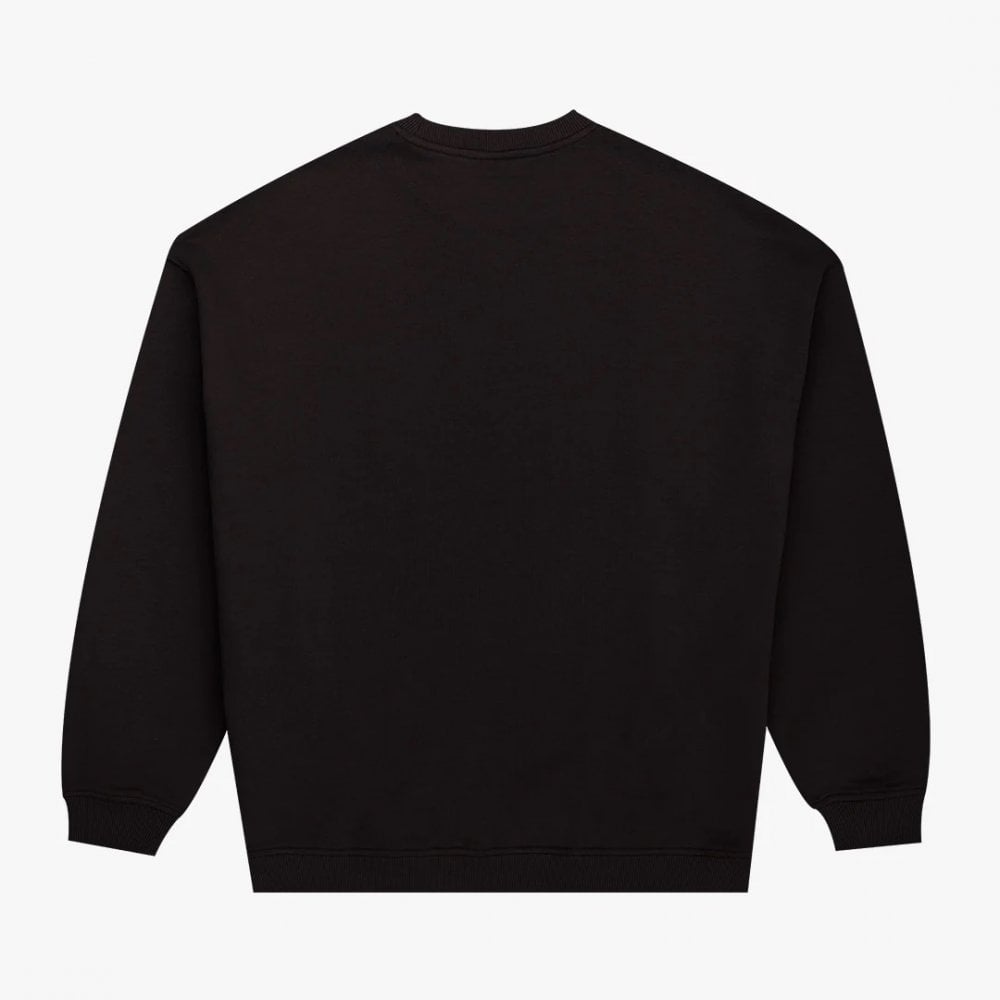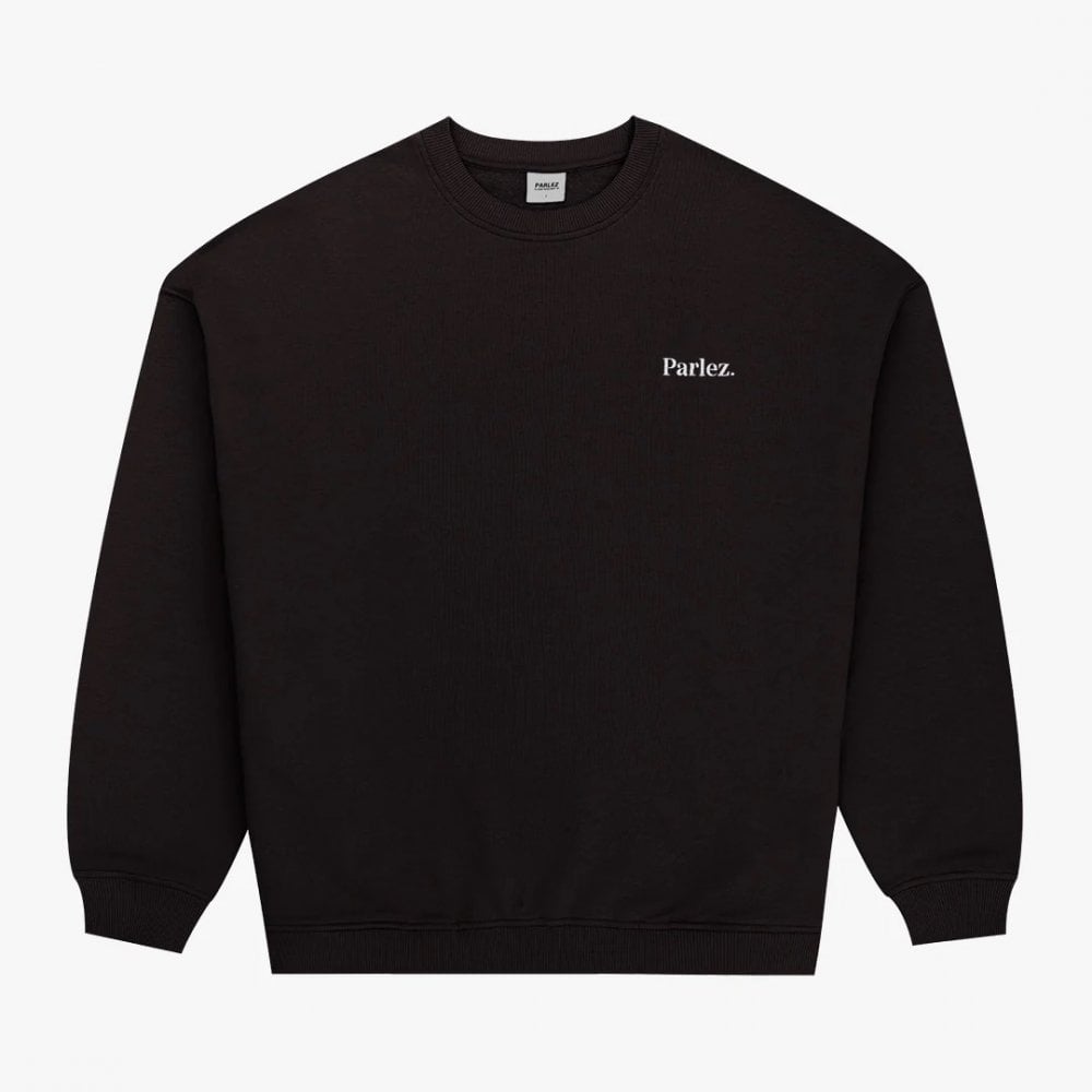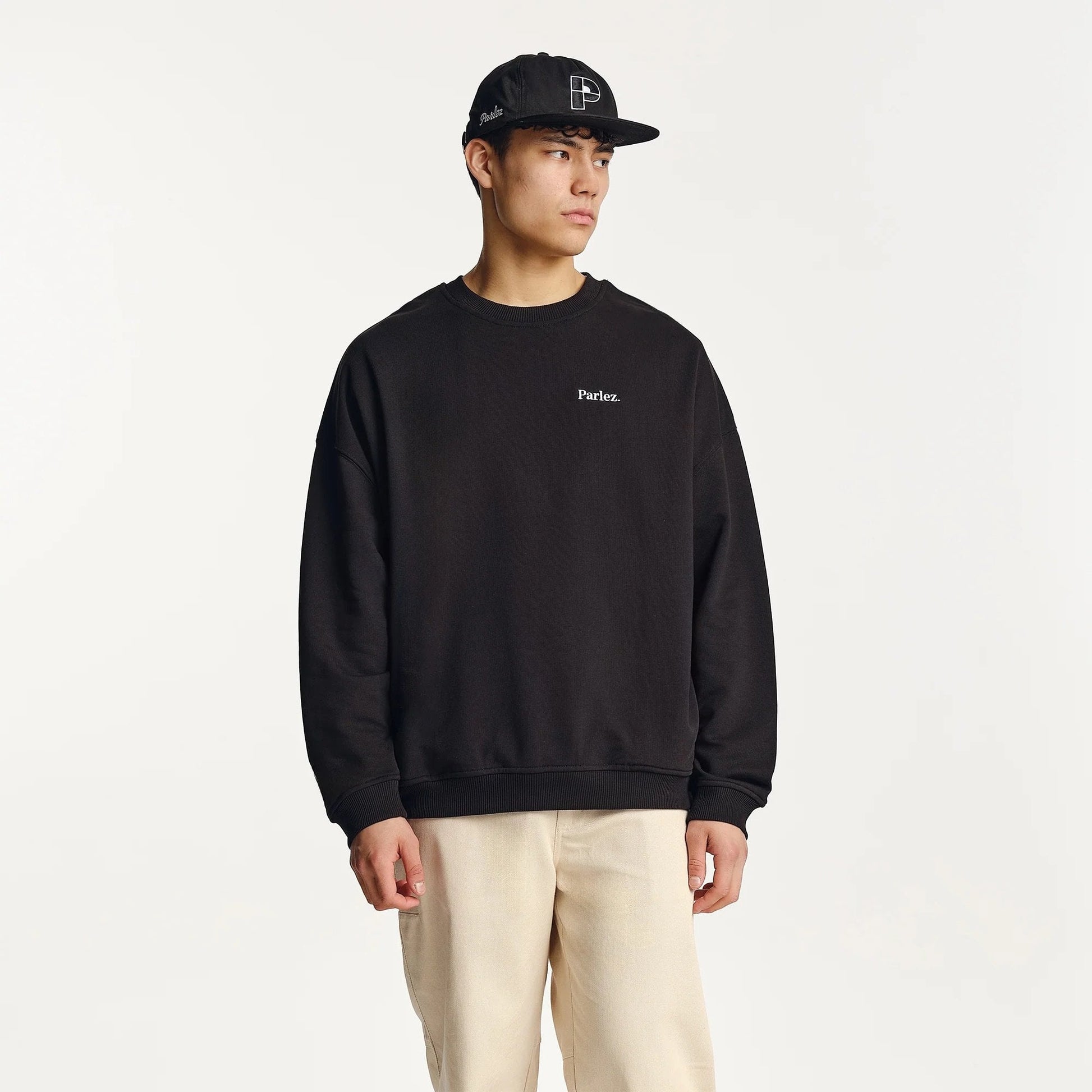 The Vernon Crew in Black. An oversized sweatshirt, made from 80% Organic Cotton / 20% Recycled Polyester 350gsm loopback material. Featuring a classic crew neck, drop shoulders and two side seam pockets. Finished with a simple embroidered logo on the chest.