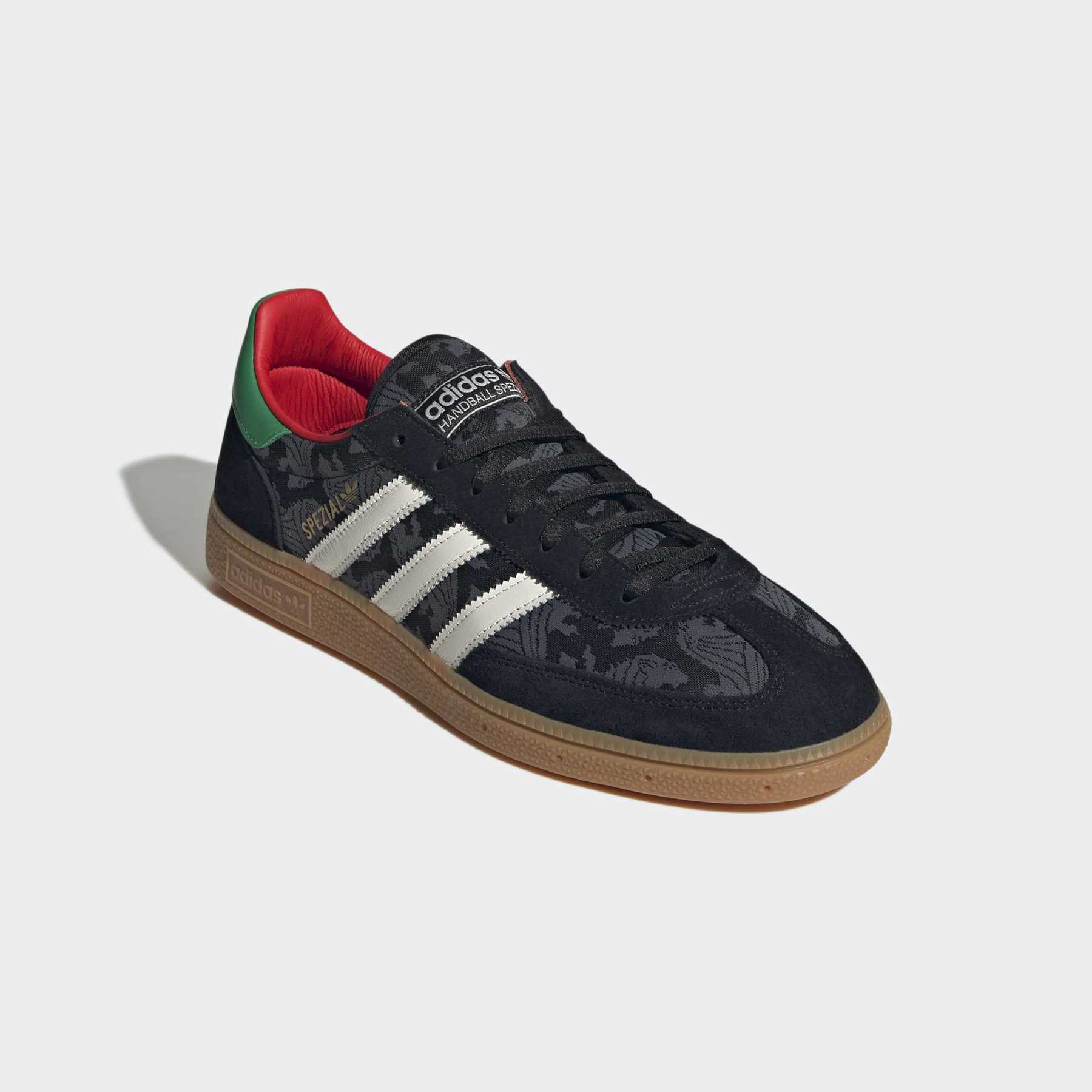 A legendary indoor sports shoe reimagined for today. The Handball Spezial draws inspiration from classic football jerseys, combining bold colour blocks with mixed textures—suede, leather, and graphic textiles. The T-Toe silhouette features adidas Spezial branding across the quarter, heel, and tongue, while a graphic sockliner and soft leather lining add vintage character. Perfect for those seeking authentic retro style with distinctive design details.