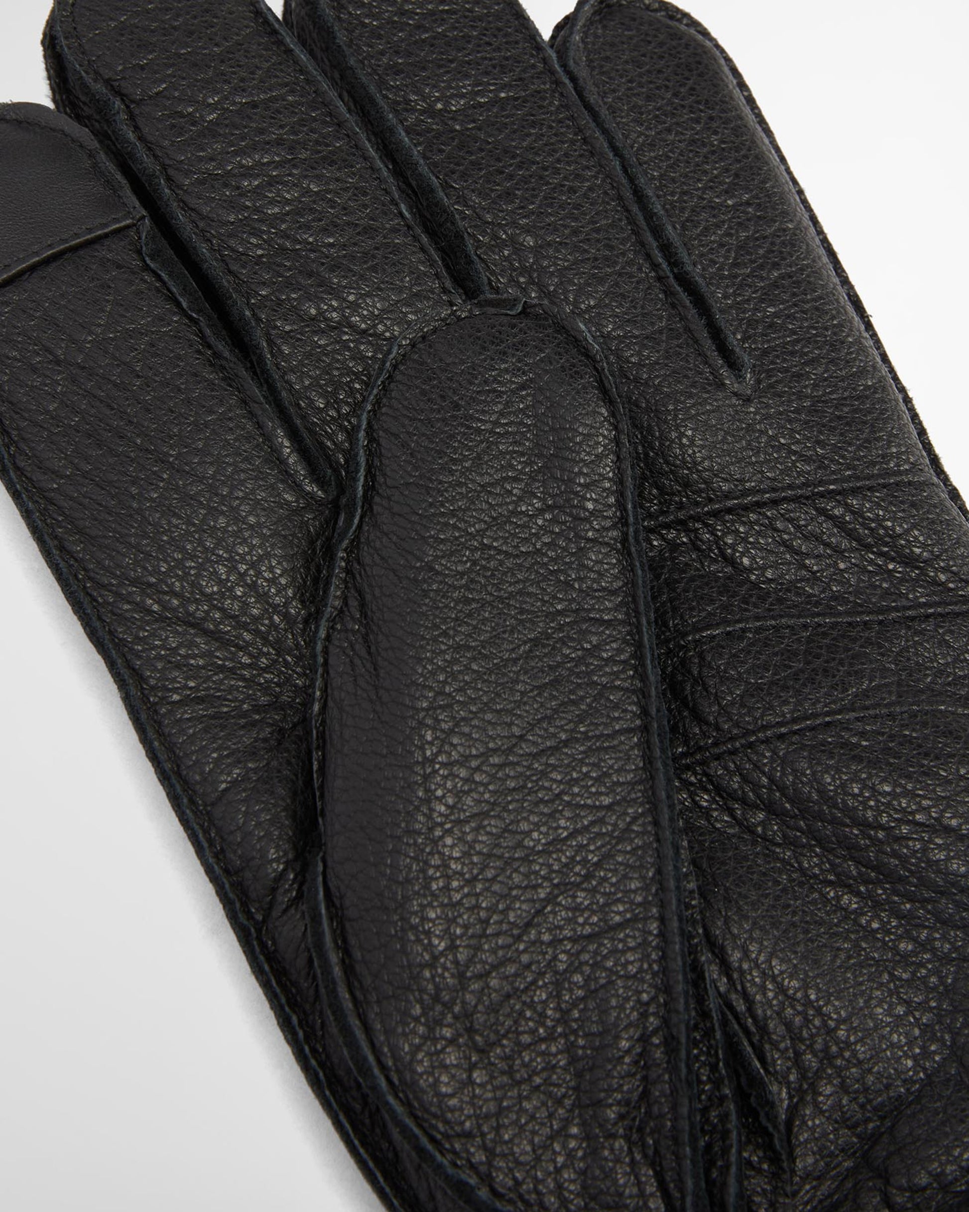 The Barbour Highfield Gloves in black feature durable goatskin leather with a soft fleeced lining and knitted ribbed cuffs. Designed to keep your hands warm on chilly days, they offer comfort and long-lasting wear.