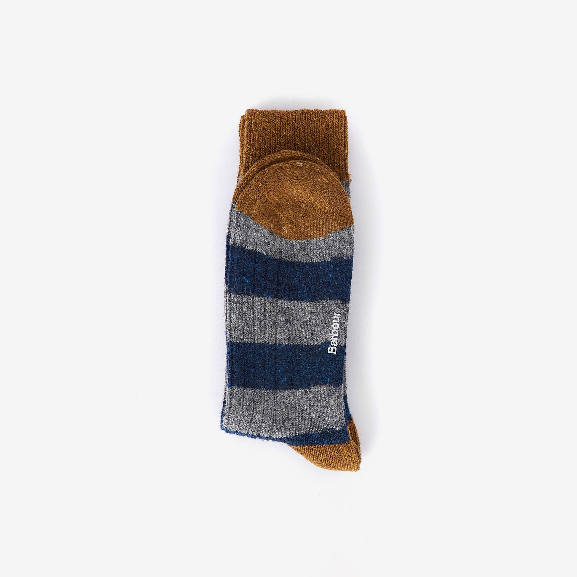 Made from a soft wool-blend, the Houghton Stripe Socks in Thyme offer comfort and style. Featuring wide stripes and contrasting heel and toe details. Finished with a Barbour logo on the sole, these socks are perfect for everyday wear.