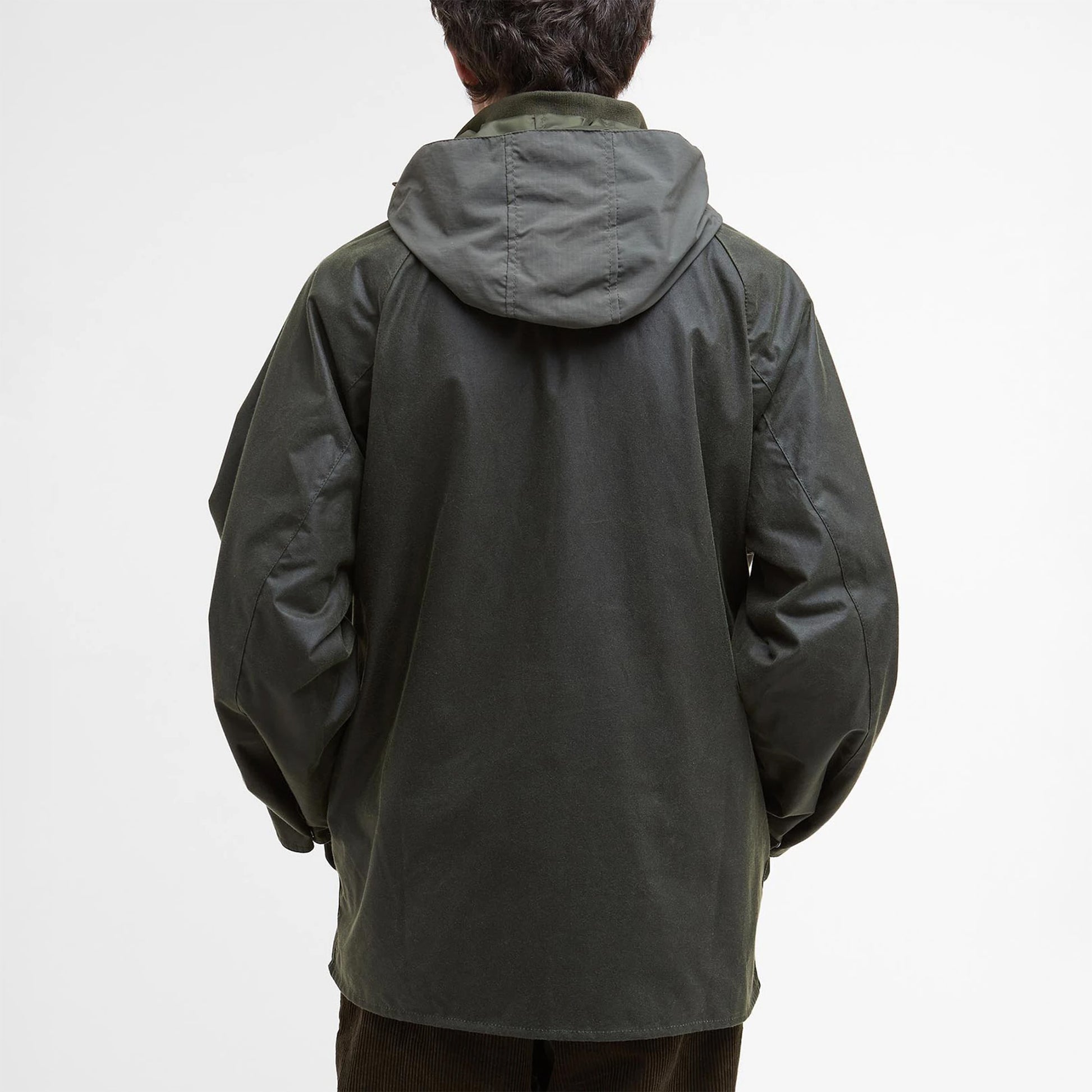 Bsed on the original Barbour Solway Waxed Jacket, first introduced in 1960. This all round country jacket was designed with optimal practicality and functionality in mind, This season's Modified Solway Waxed Jacket is crafted from 6oz sylkoil waxed cotton, and features a signature cord collar, detachable fabric hood and lower bellow pockets, Prefect for the great ourdoors on countryside adventures and city exploring alike.