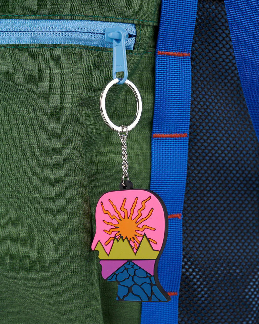 Durable nylon climbing utility bag with a drawstring closure for secure packing. Features a woven Brain Dead Equipment patch on the front, zippered pockets for organized storage, and a PVC logohead keychain zipper pull. Includes an attached carabiner for easy attachment to gear loops or backpacks.