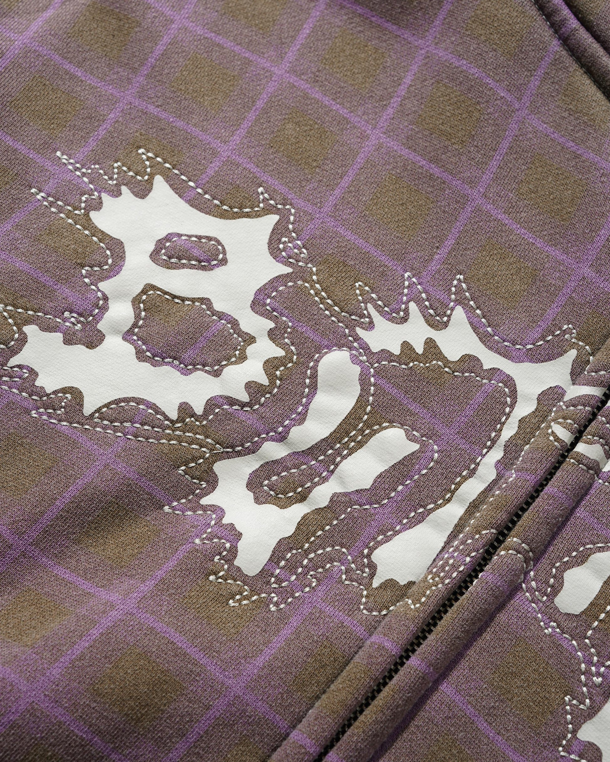 This Eruption Zip-thru Hood combines comfort and style with a soft cotton/polyester 12oz fleece. Featuring a full zip closure, mineral wash finish, and durable screen print with embroidery on the front. Contrast stitching and adjustable drawcords on the hood add subtle detail, while the all-over printed plaid pattern gives it a distinctive look.