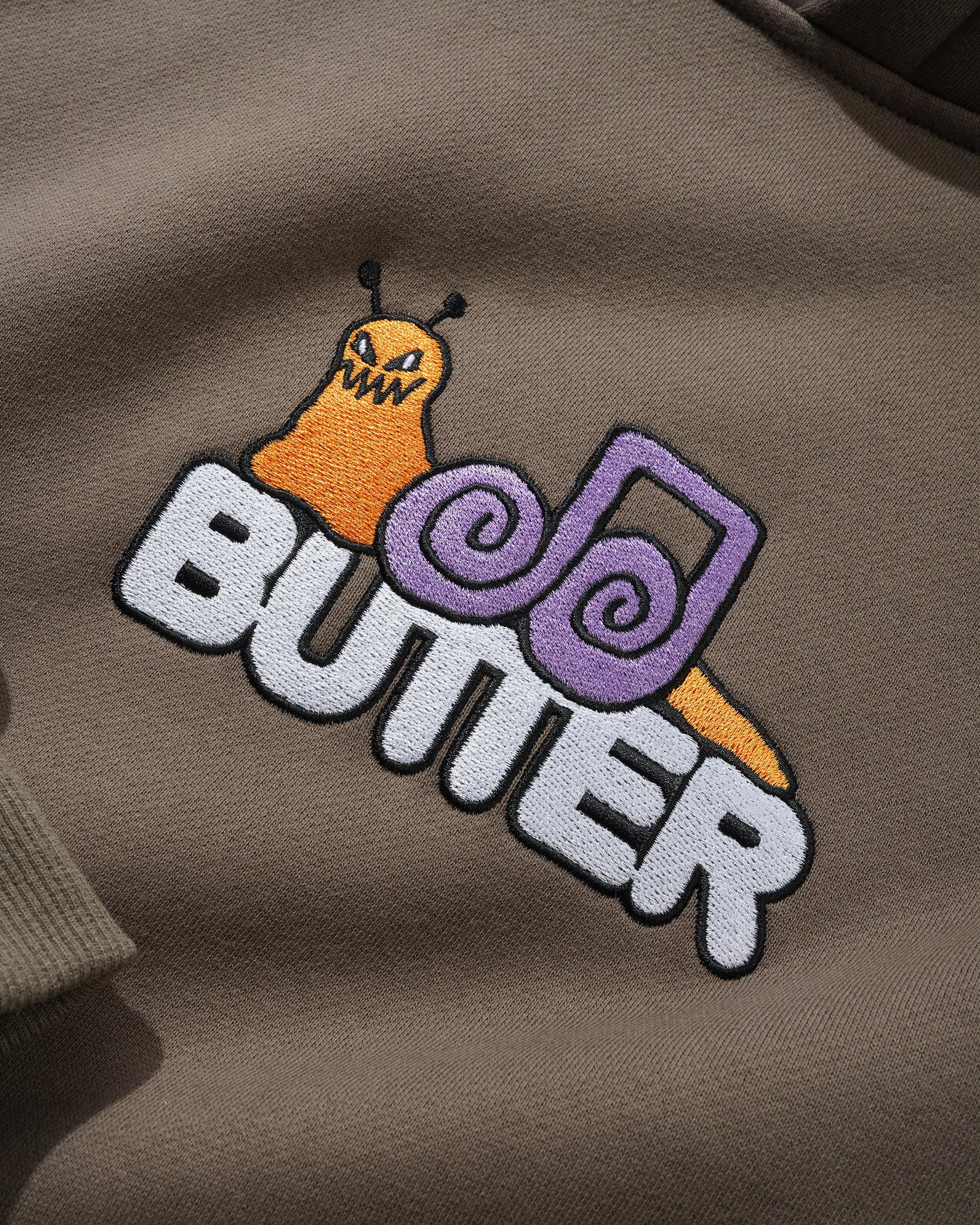 This Butter Goods Snail Pullover Hood icombines a soft cotton/polyester blend fleece for comfort and durability. It features direct embroidery on the front for a subtle detail. The loose, boxy fit with a relaxed hem and shorter length offers an easy, laid-back style perfect for everyday wear.