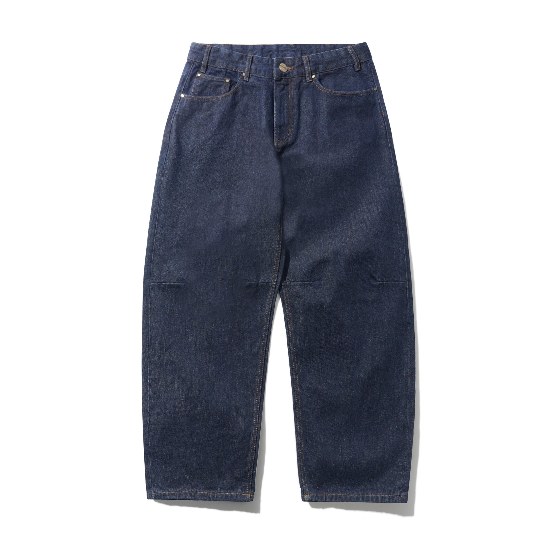 These Butter Goods Wide Cut Denim Jeans are crafted from 100% Selvedge Denim for durability and classic style. Designed with darts at the knees for a comfortable fit and pleats above the back pockets for added detail. The back features patch pockets with a woven label and a PU patch on the waistband. Belt loops include an internal drawstring for adjustable waist support, combining functionality with a relaxed, timeless look.