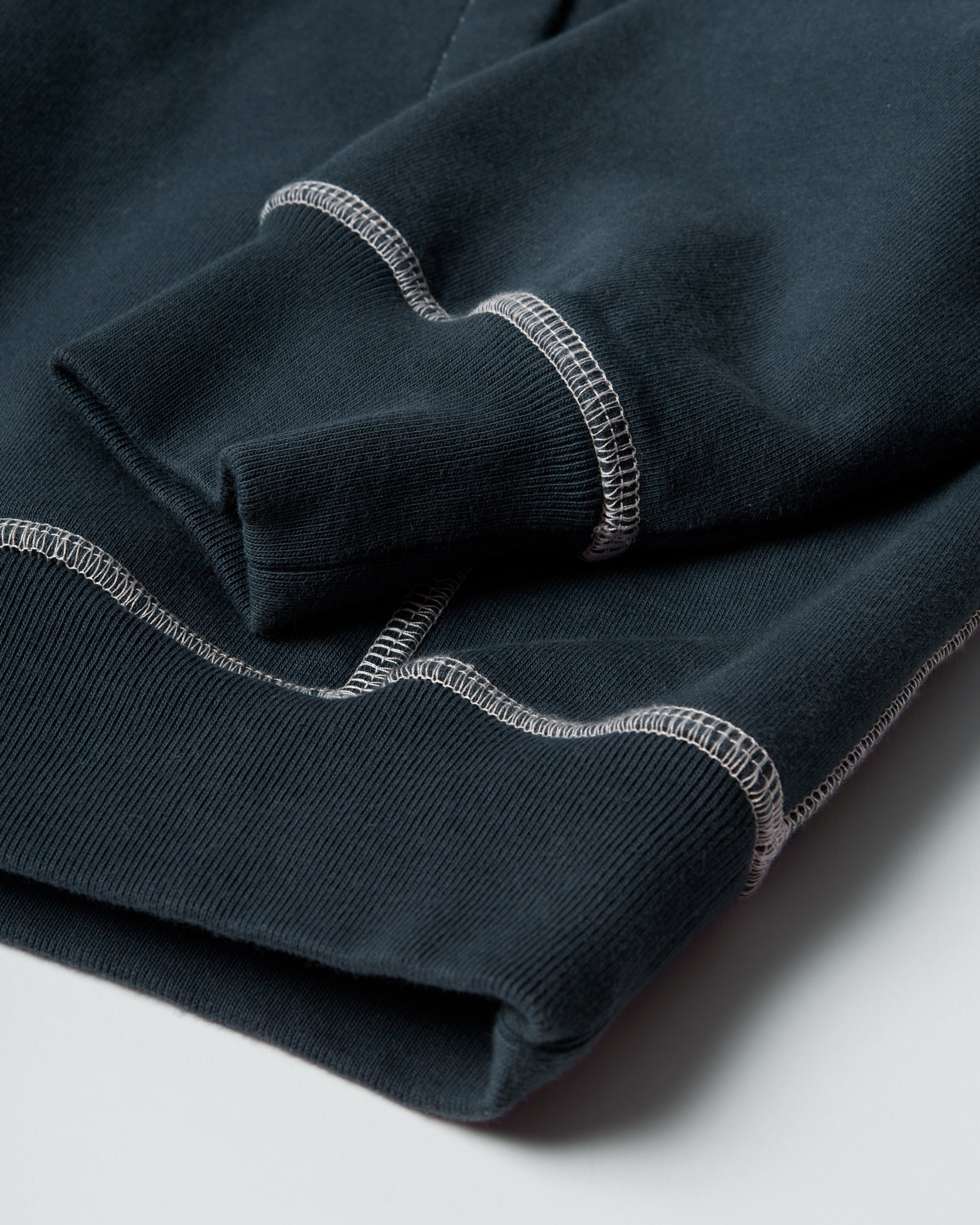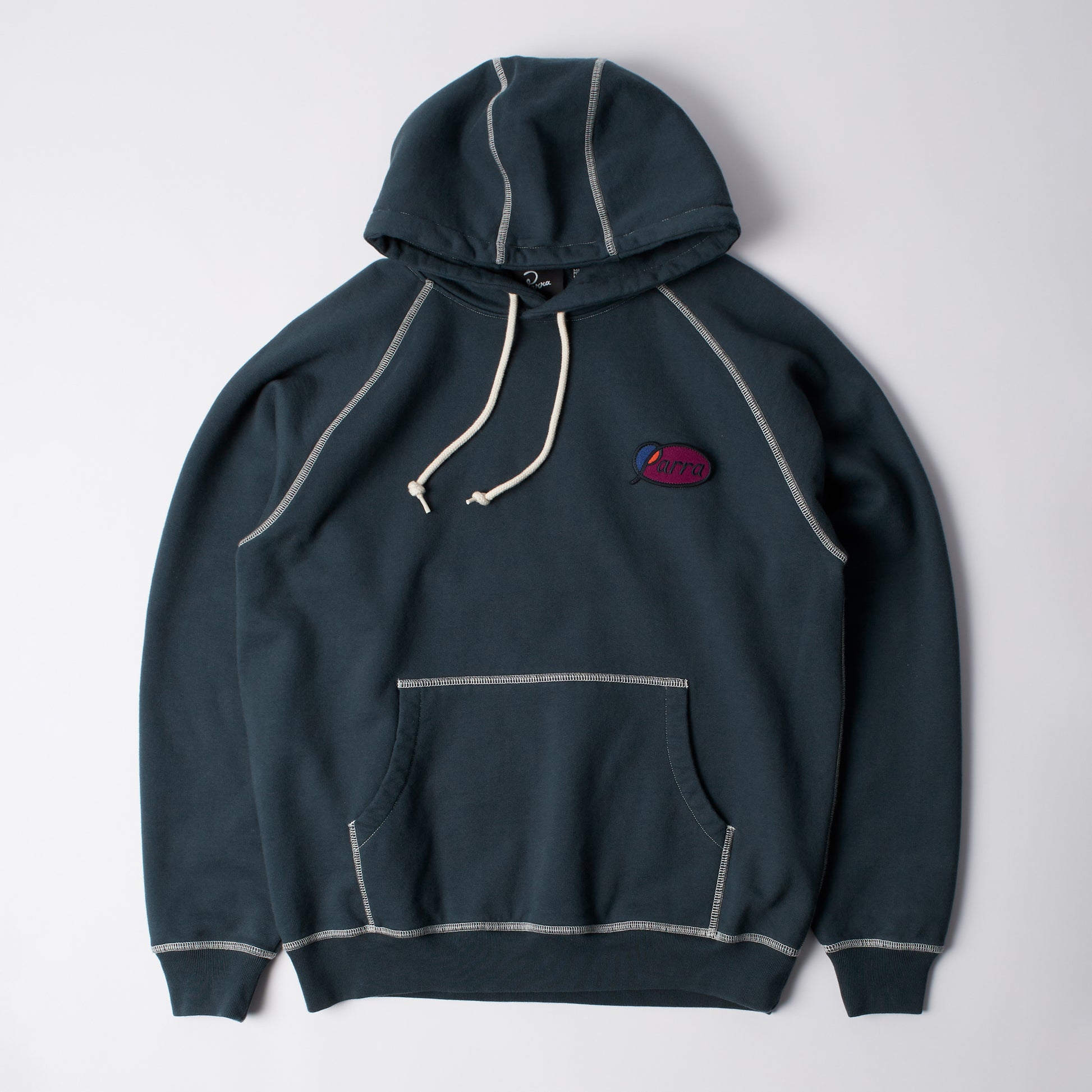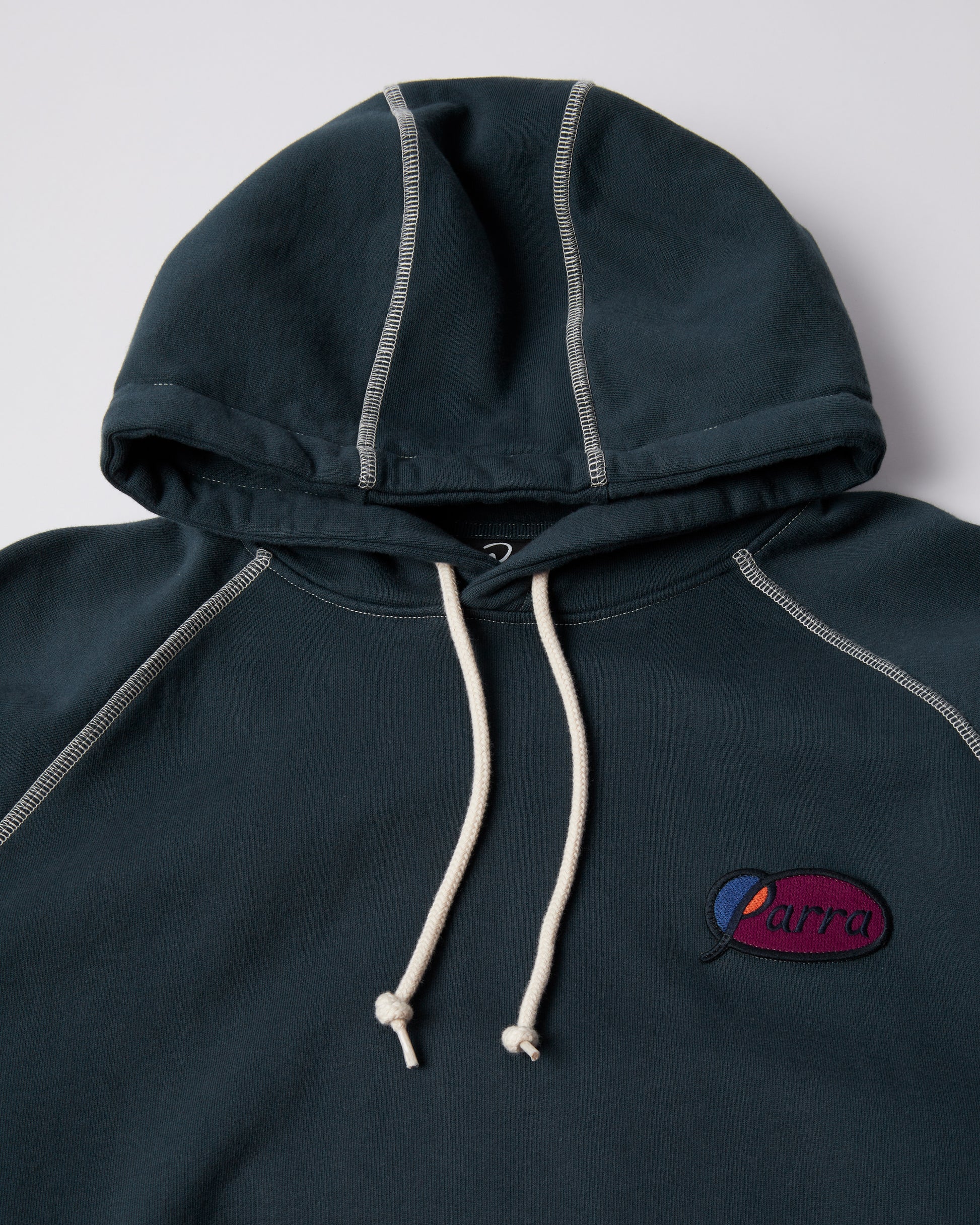 Hooded sweatshirt with the Circled script logo as an embroidery at chest. This hoodie has contrasting overlock stitching.