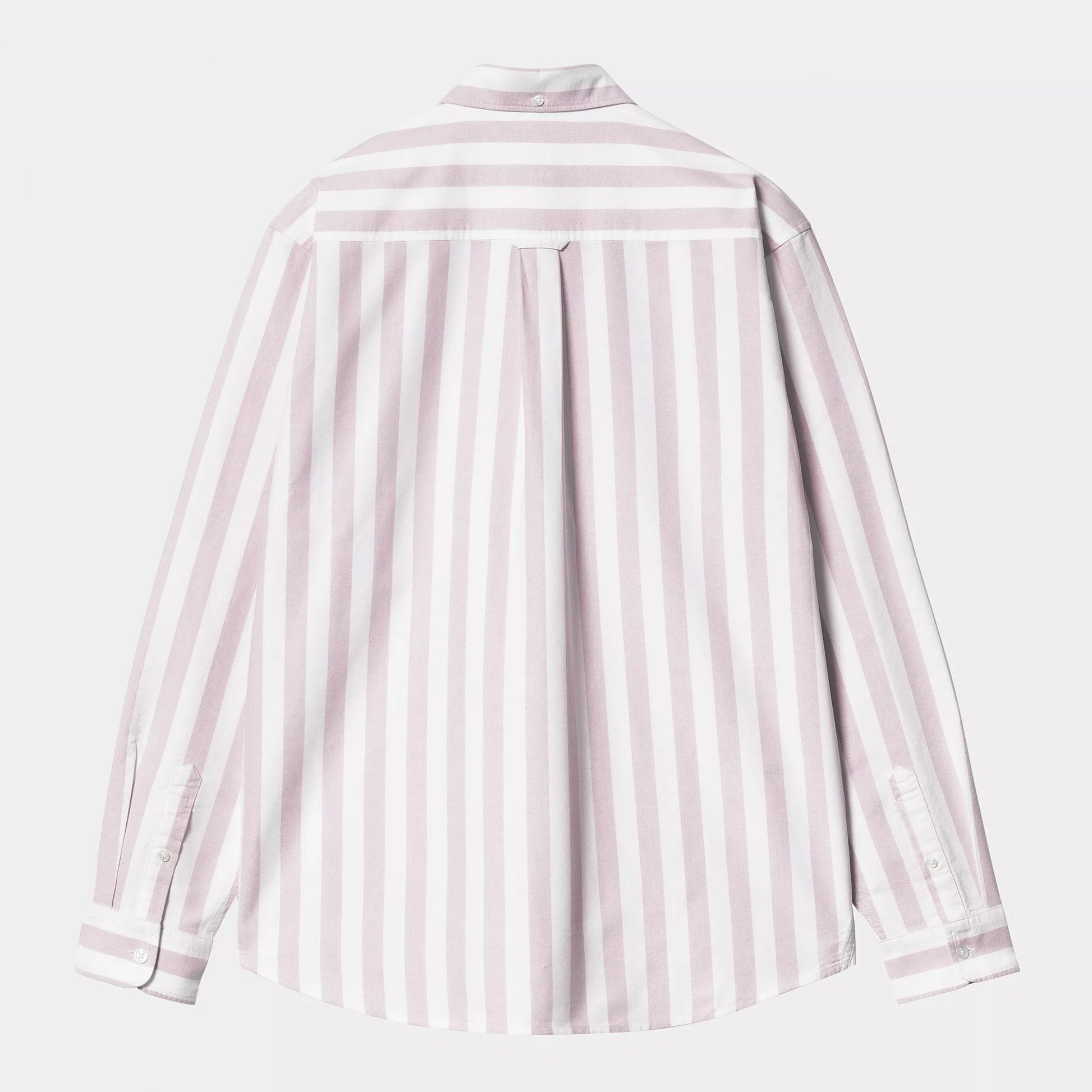 The L/S Dillon Shirt is made from lightweight Oxford cotton in a loose fit and has been garment-washed for a softer feel. It features allover stripes. An embroidered 'C' Logo appears on the chest.