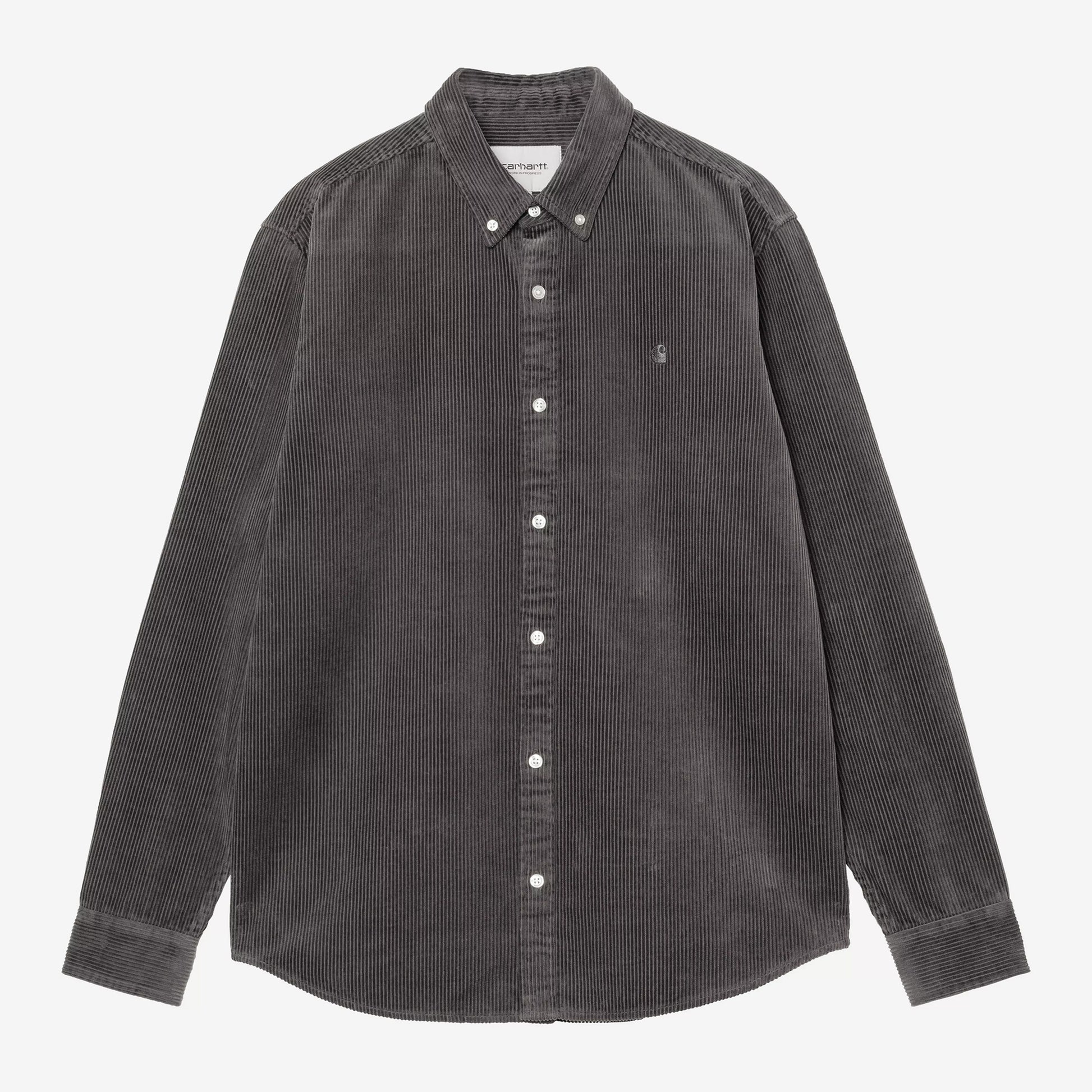 The L/S Madison Cord Shirt in Angelite is made from soft 8 wale cotton corduroy, giving it a comfortable, textured feel. It has a regular fit with a curved hem and a classic button-down collar for everyday wear. The shirt also features a small embroidered 'C' logo on the chest.