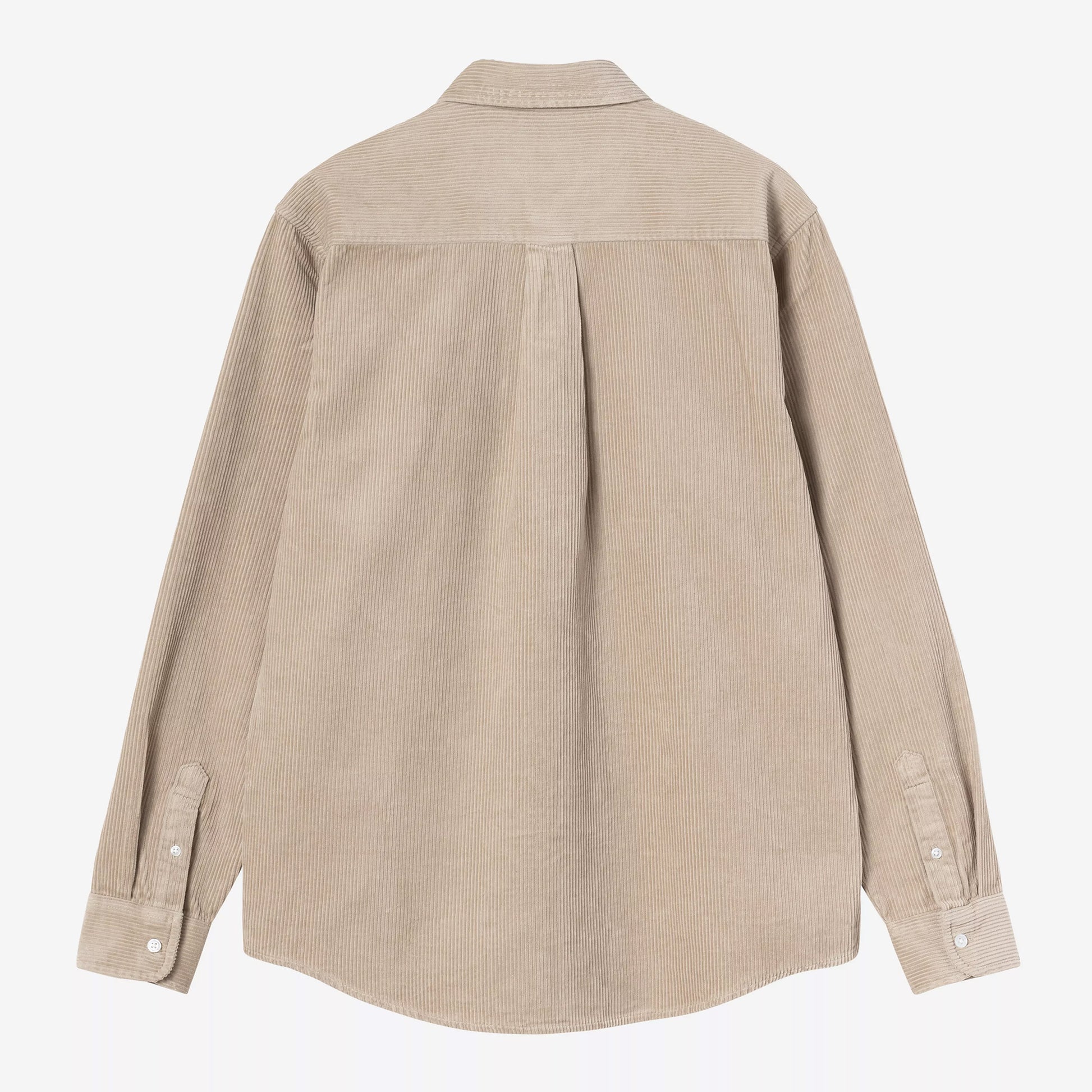 The L/S Madison Cord Shirt in Angelite is made from soft 8 wale cotton corduroy, giving it a comfortable, textured feel. It has a regular fit with a curved hem and a classic button-down collar for everyday wear. The shirt also features a small embroidered 'C' logo on the chest.