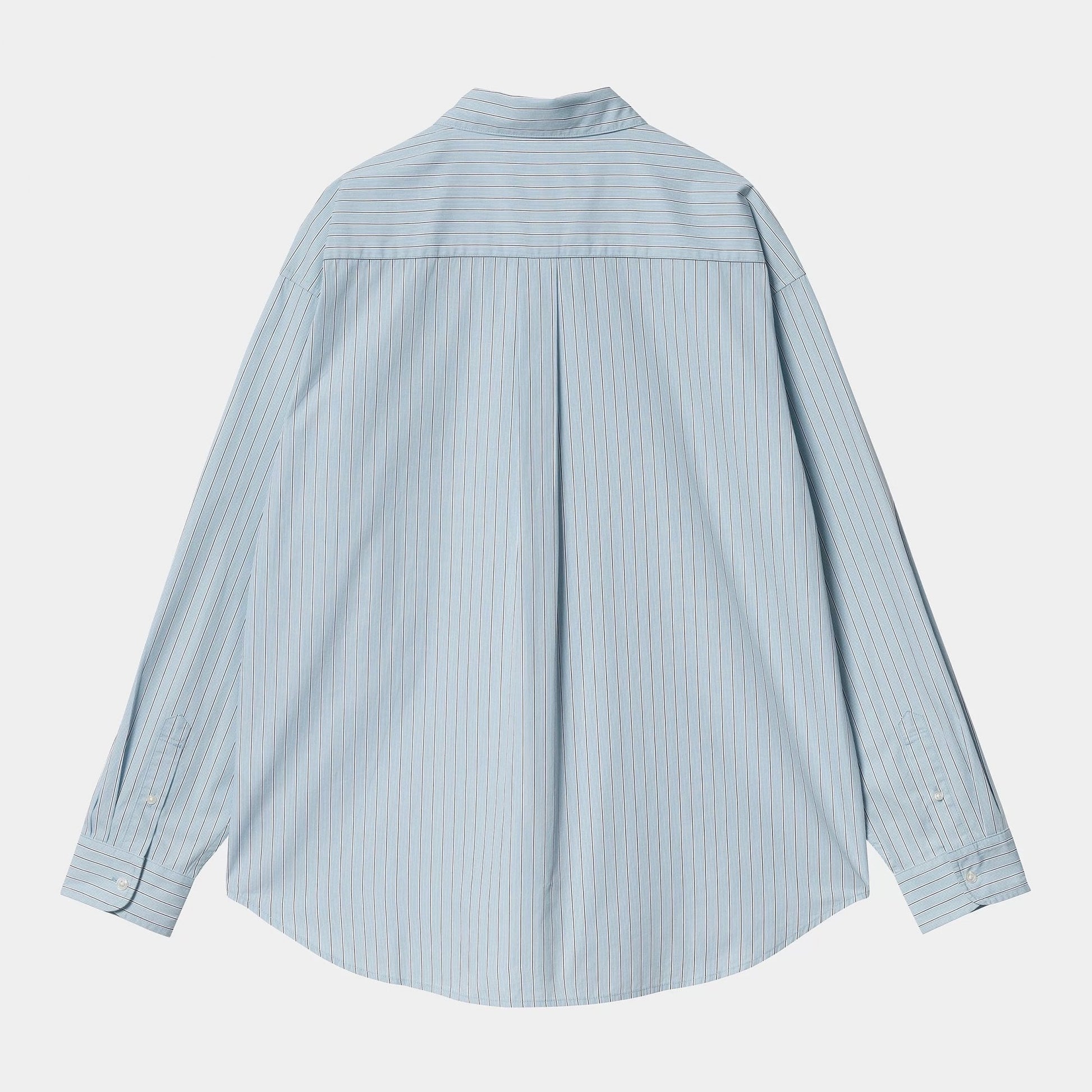 The L/S Notus Shirt is made in a loose fit from lightweight cotton poplin featuring allover stripes. The shirt has a chest pocket and is detailed with an embroidered 'C' Logo.