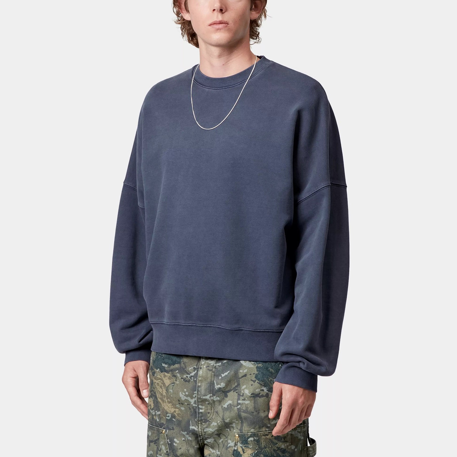 The RGGD Sweat - Jupiter (Garment Dyed) features heavyweight cotton jersey with a soft, loopback texture. Its balloon fit offers a relaxed, boxy silhouette with dropped shoulders for added comfort. Finished with ribbed trims and graphic appliqués on the back.