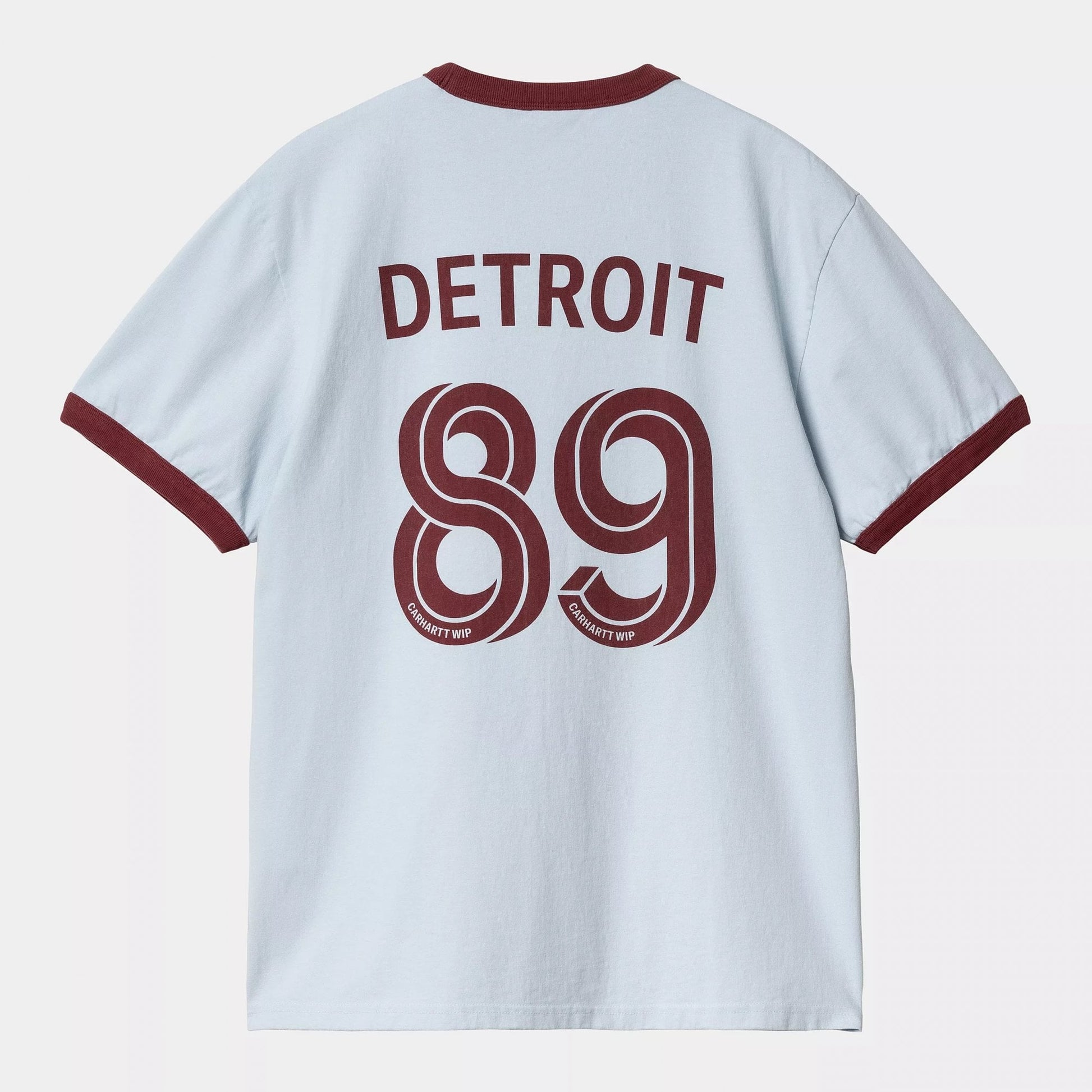 The S/S 89 Ringer T-Shirt is made from midweight cotton jersey in a regular fit, featuring contrasting ribbed trims. Graphic prints appear on the front and back.