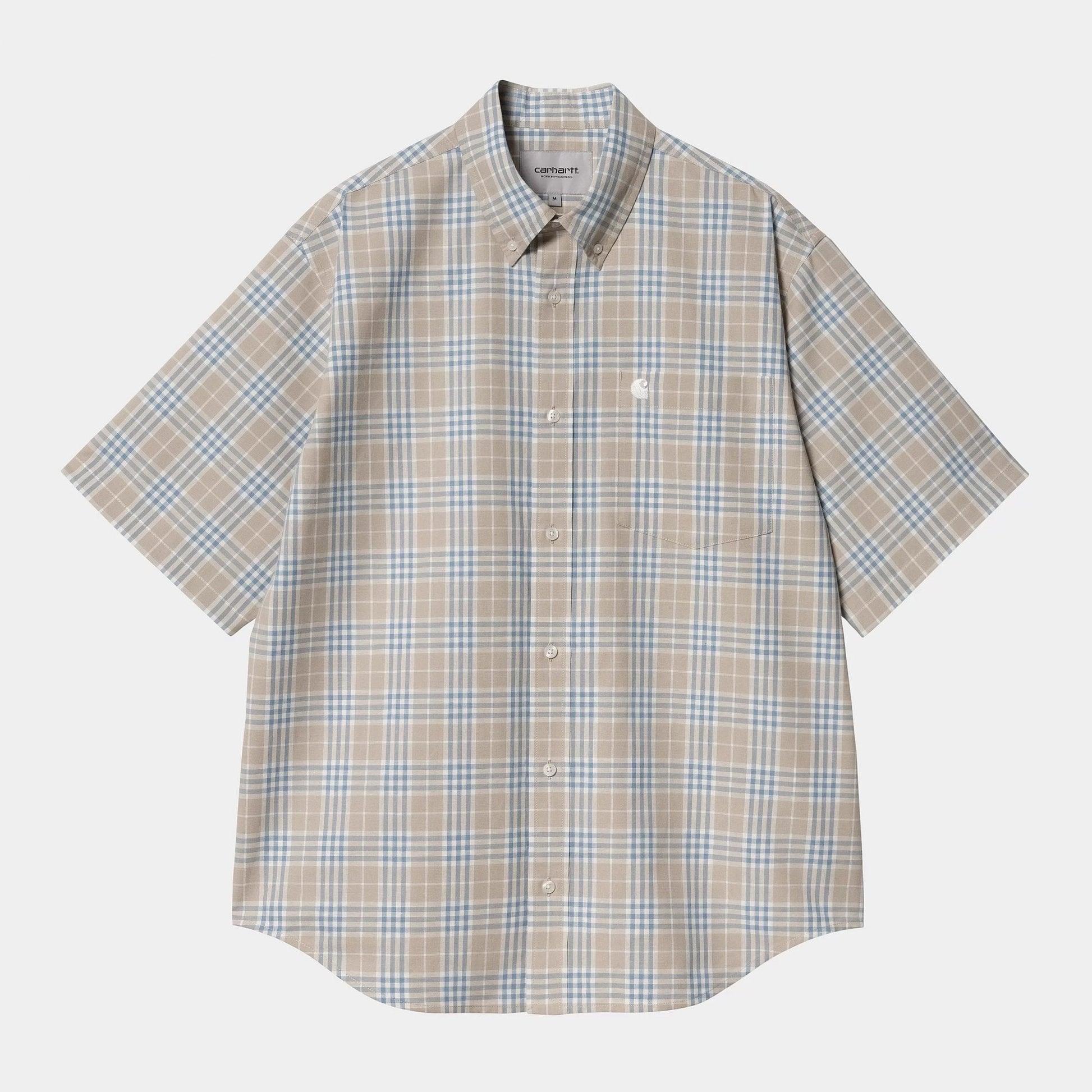 The S/S Niven Shirt is made from a lightweight cotton-linen blend and features an allover check pattern. The item has a buttoned front and collar. An embroidered 'C' Logo appears on the chest pocket.