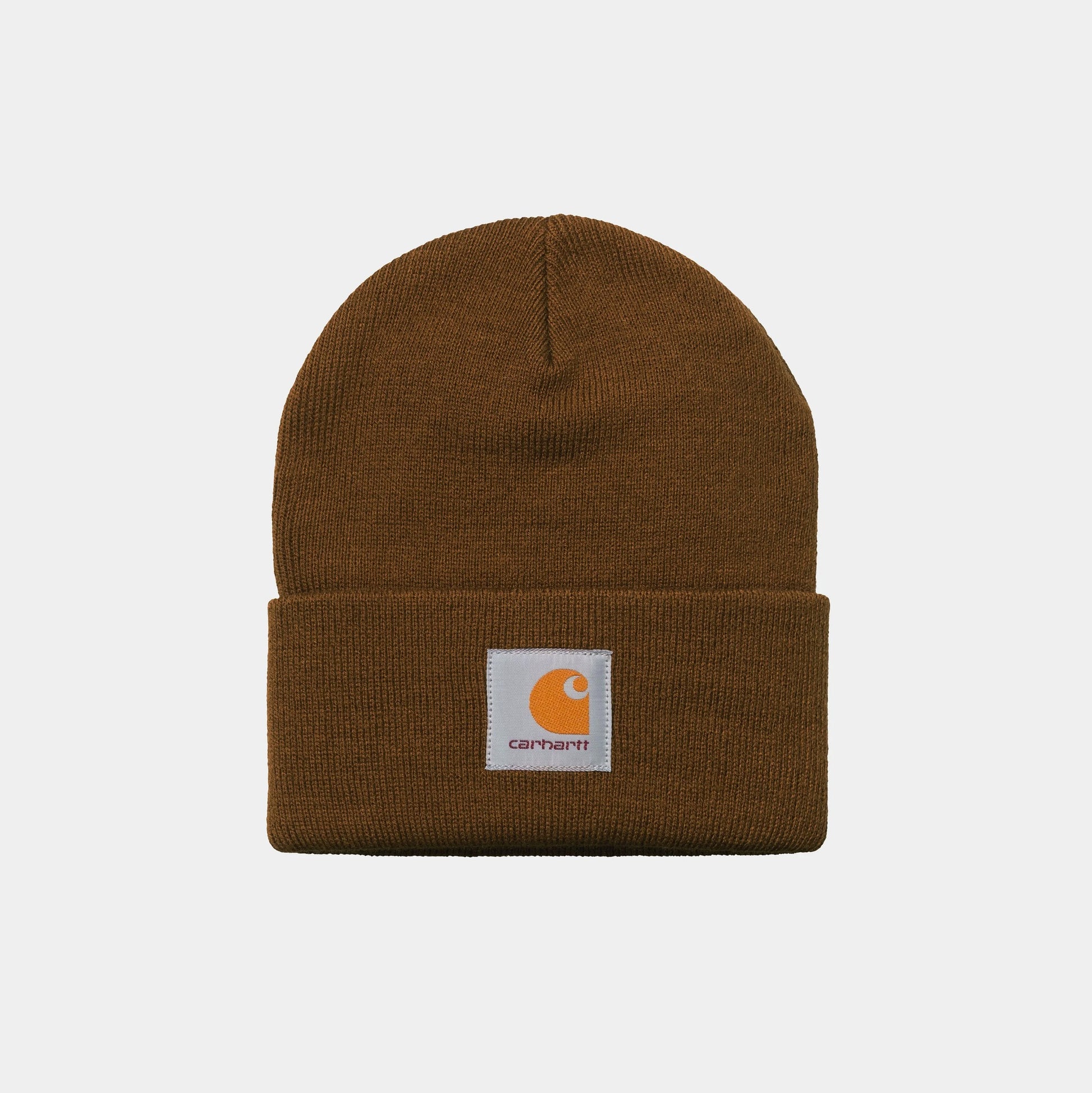 The Short Watch Hat is an updated version of the Carhartt WIP staple Acrylic Watch Hat. Created in a warm nine gauge acrylic fabric with a stretchy rib knit that ensures comfort and a fit suitable for everyone. Features a woven Carhartt WIP label on the front. One size.