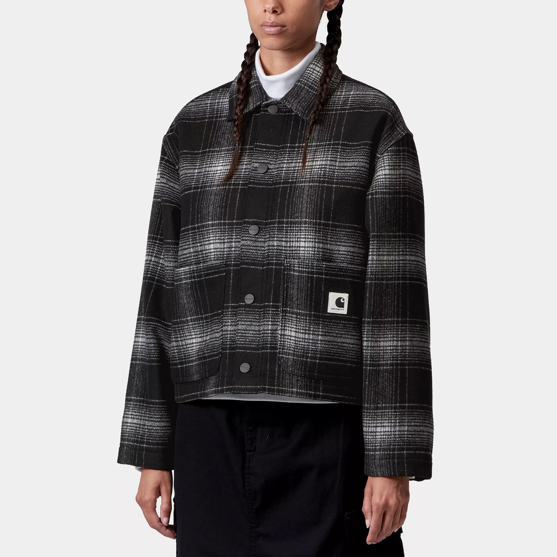 The Women’s Brennan Shirt Jacket combines warmth and style with its midweight poly-wool fabric and smooth nylon twill lining. Designed for comfort, it features adjustable cuffs and a secure shank button closure. Two front patch pockets provide practical storage, with one showcasing a woven Square Label detail. Perfect for layering in cooler weather.