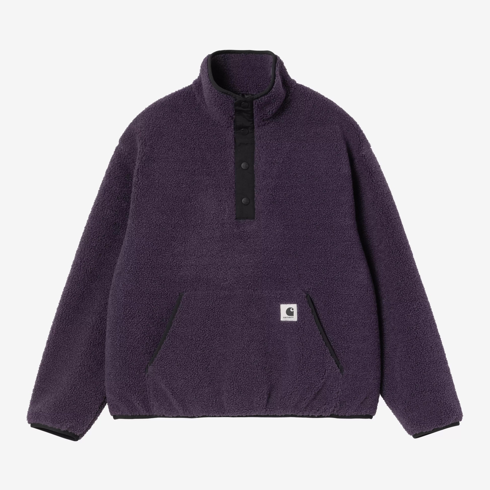 The Carhartt WIP Women's Elliot High Neck Liner combines durable heavyweight polyester pile with a smooth polyester twill lining for exceptional warmth and comfort. Detailed with nylon taffeta trims on the collar, snap-button half-placket, and collar, this piece offers a refined finish. Functional features include a kangaroo pocket for convenience and a woven Square Label that adds subtle branding. Designed for both style and practicality, it is an ideal layering piece for cooler conditions.