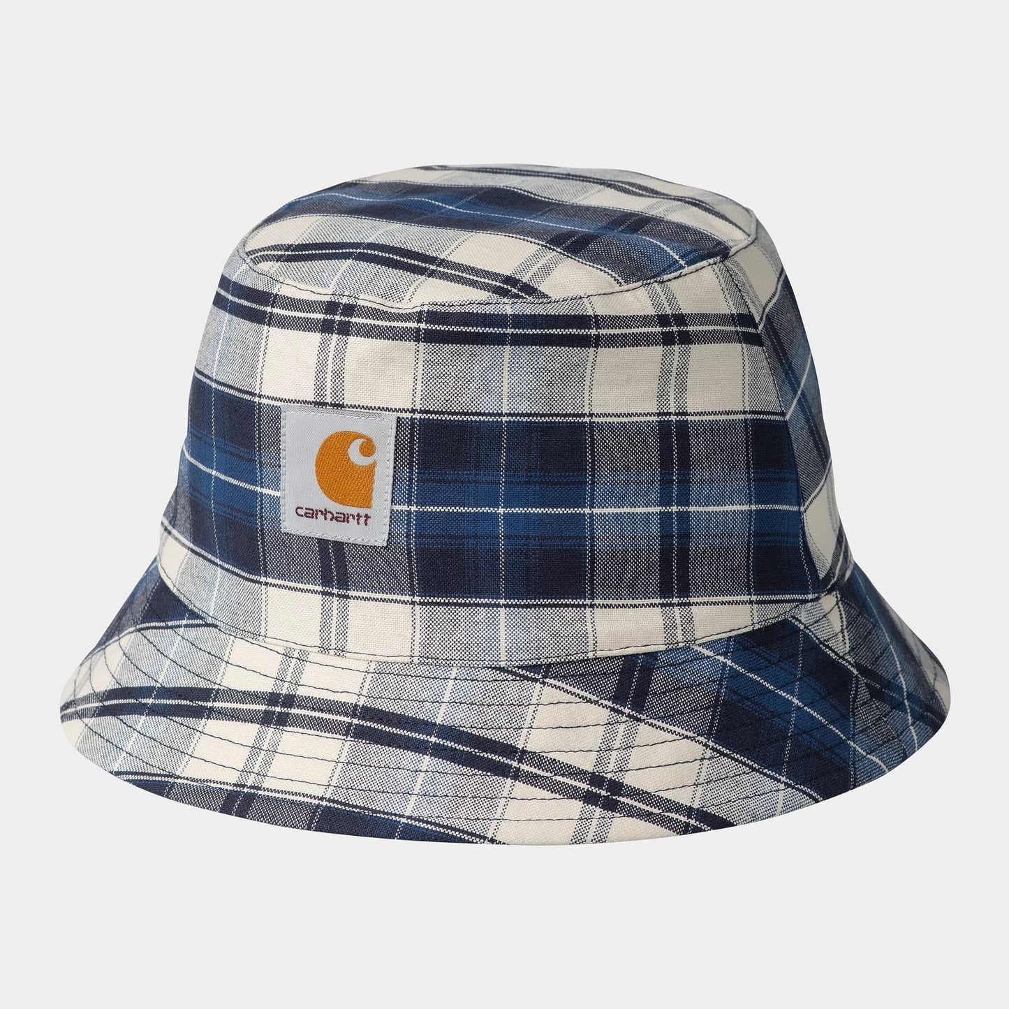 The W' Tarbell Bucket Hat is a four-panel style, made from lightweight Oxford cotton featuring an allover check pattern. A woven Square Label appears on the front.