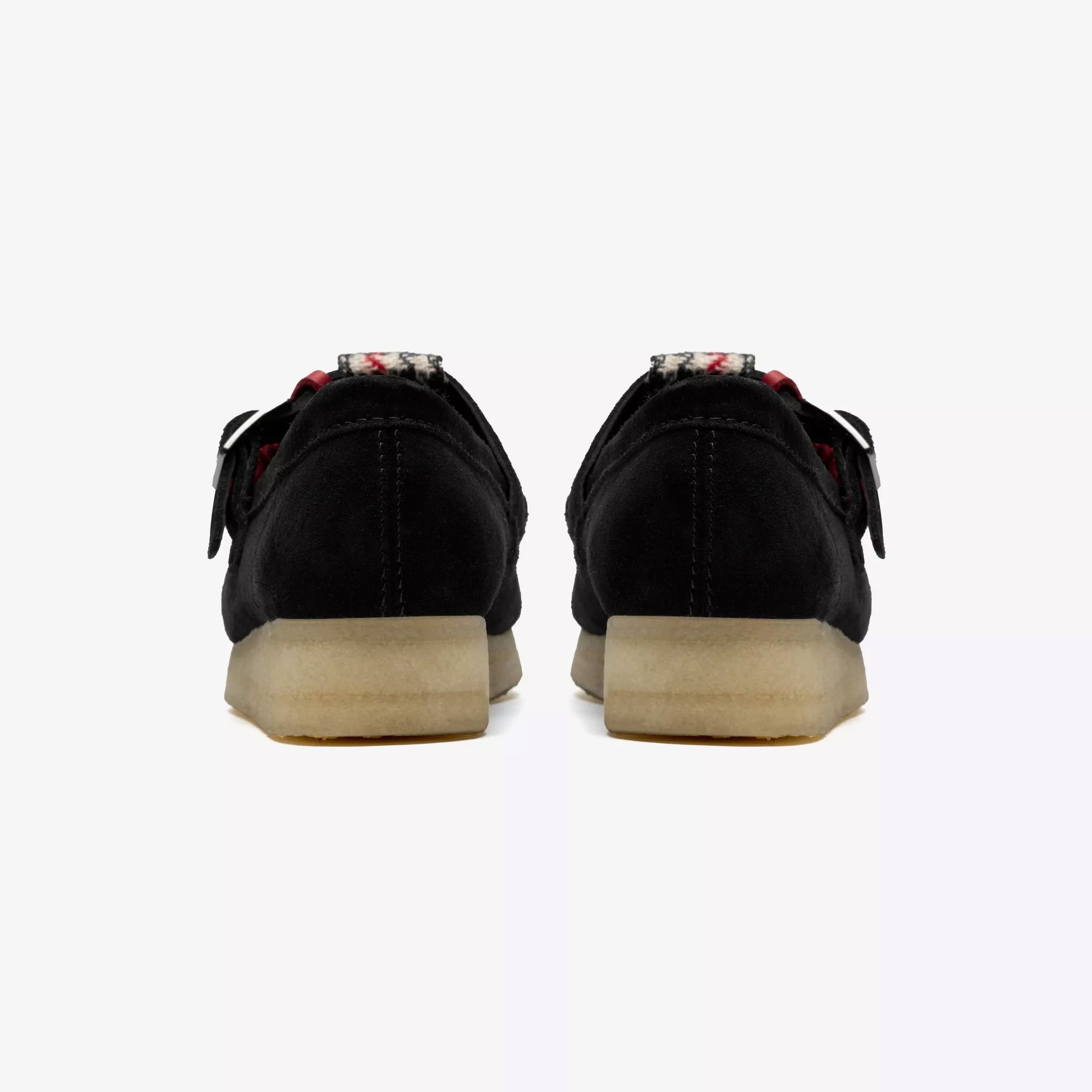 Women's Wallabee T Bar from the Clarks Originals x Harris Tweed Pack blends iconic design with premium materials. Featuring Harris Tweed fabric on the vamp and black suede quarter panels, it offers a sophisticated texture contrast. Hand-stitched apron binding highlights expert craftsmanship, while the crepe sole ensures lasting comfort and durability. The moccasin construction provides flexibility, and distinctive red tassels paired with authentic Harris Tweed hang tags emphasize its British heritage. Finished with the Clarks Originals woven sock label, this shoe delivers both style and authenticity for a refined, timeless look.