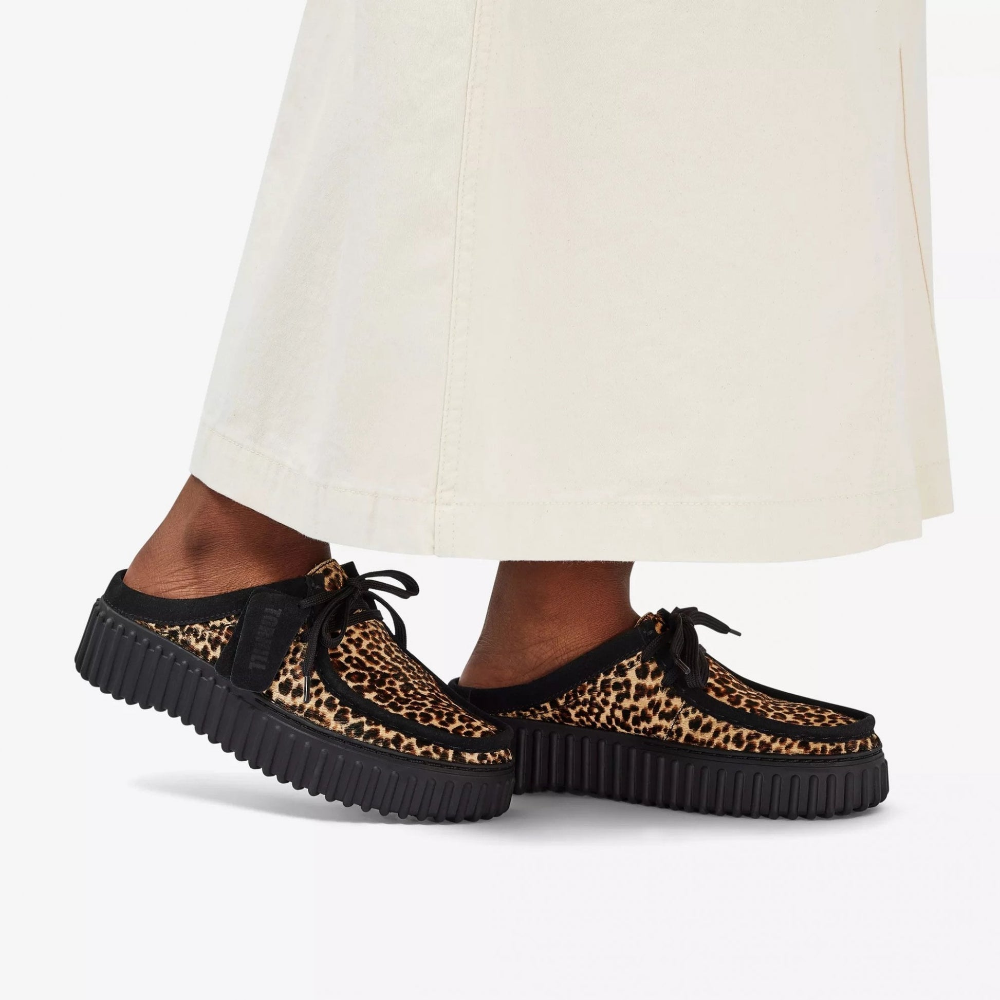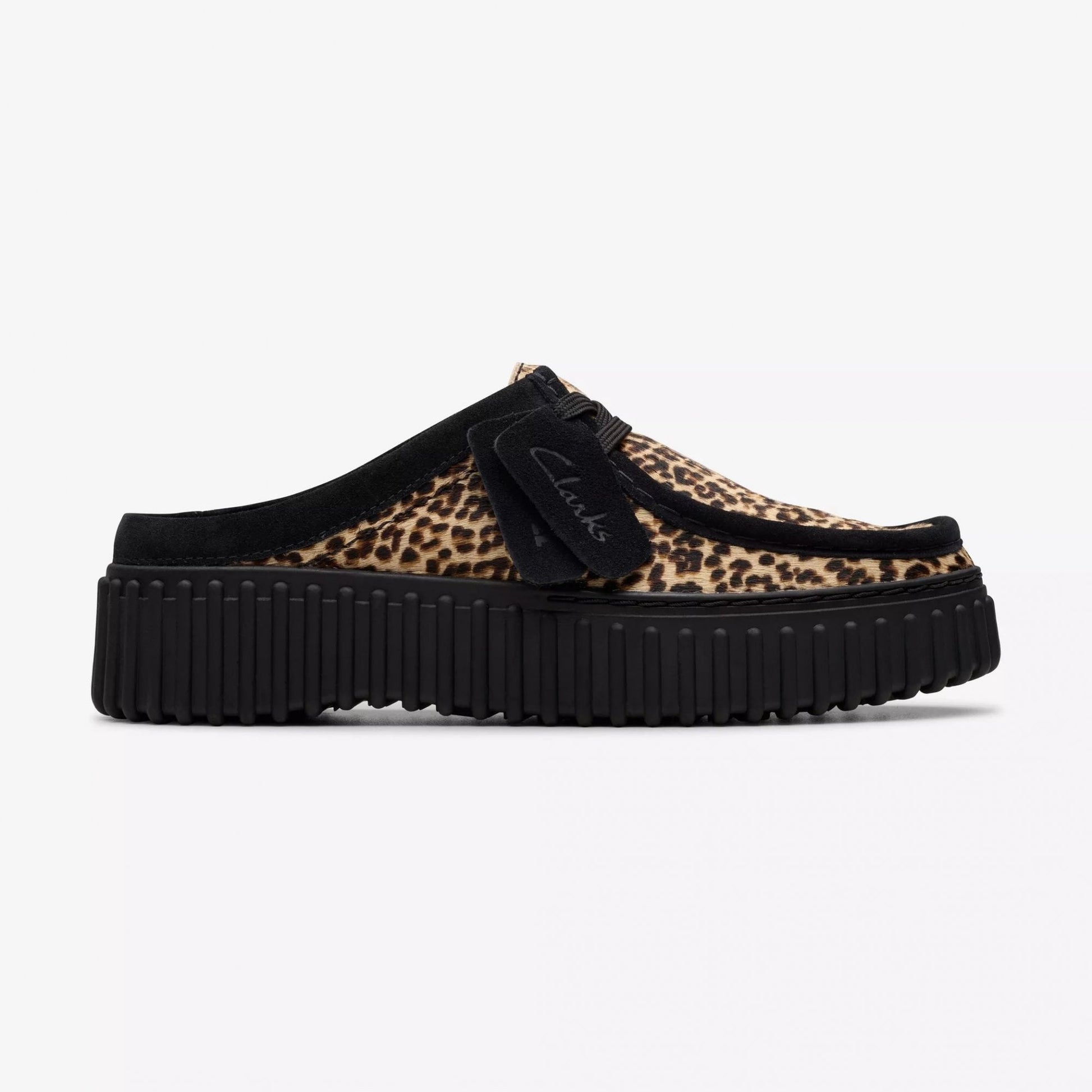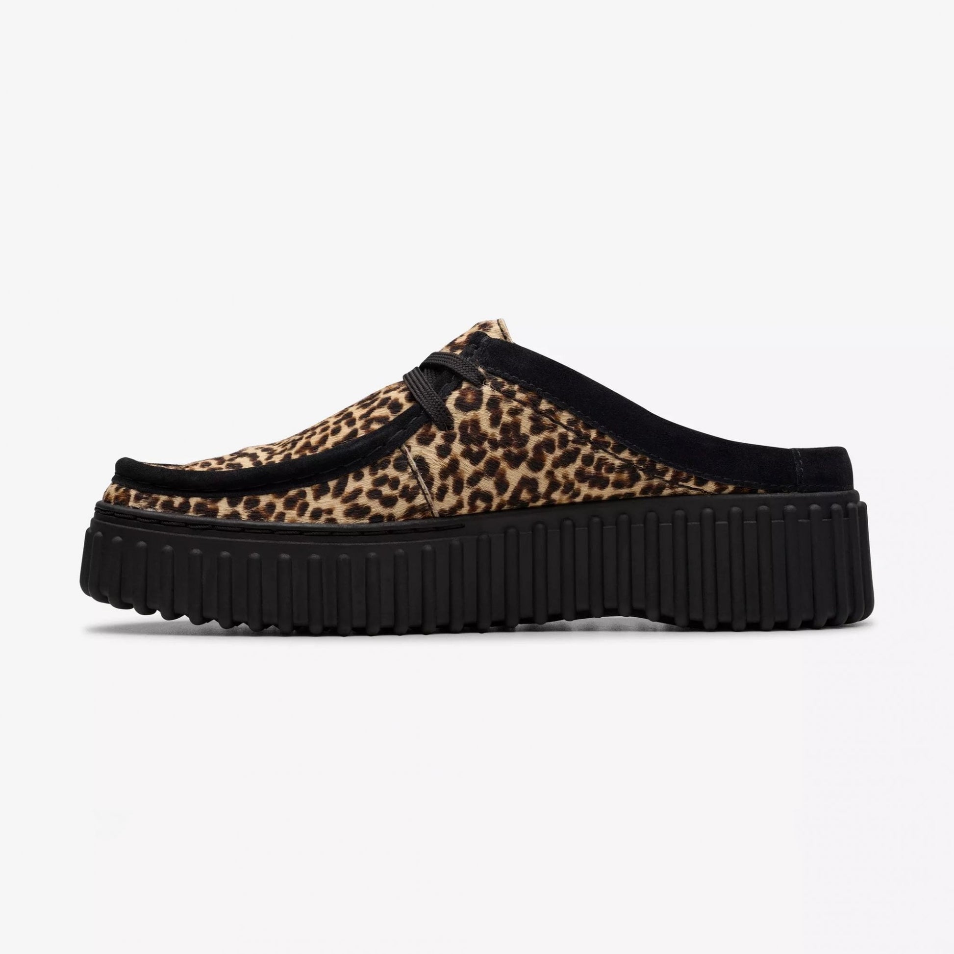 Crafted from premium suede in bold leopard print, Torhill Mule champions all the design codes of our icon in an easy slip-on profile. Its statement ribbed outsole serves up vintage Clarks cool – while heritage stitching and fobs enhance its crafted aesthetic.