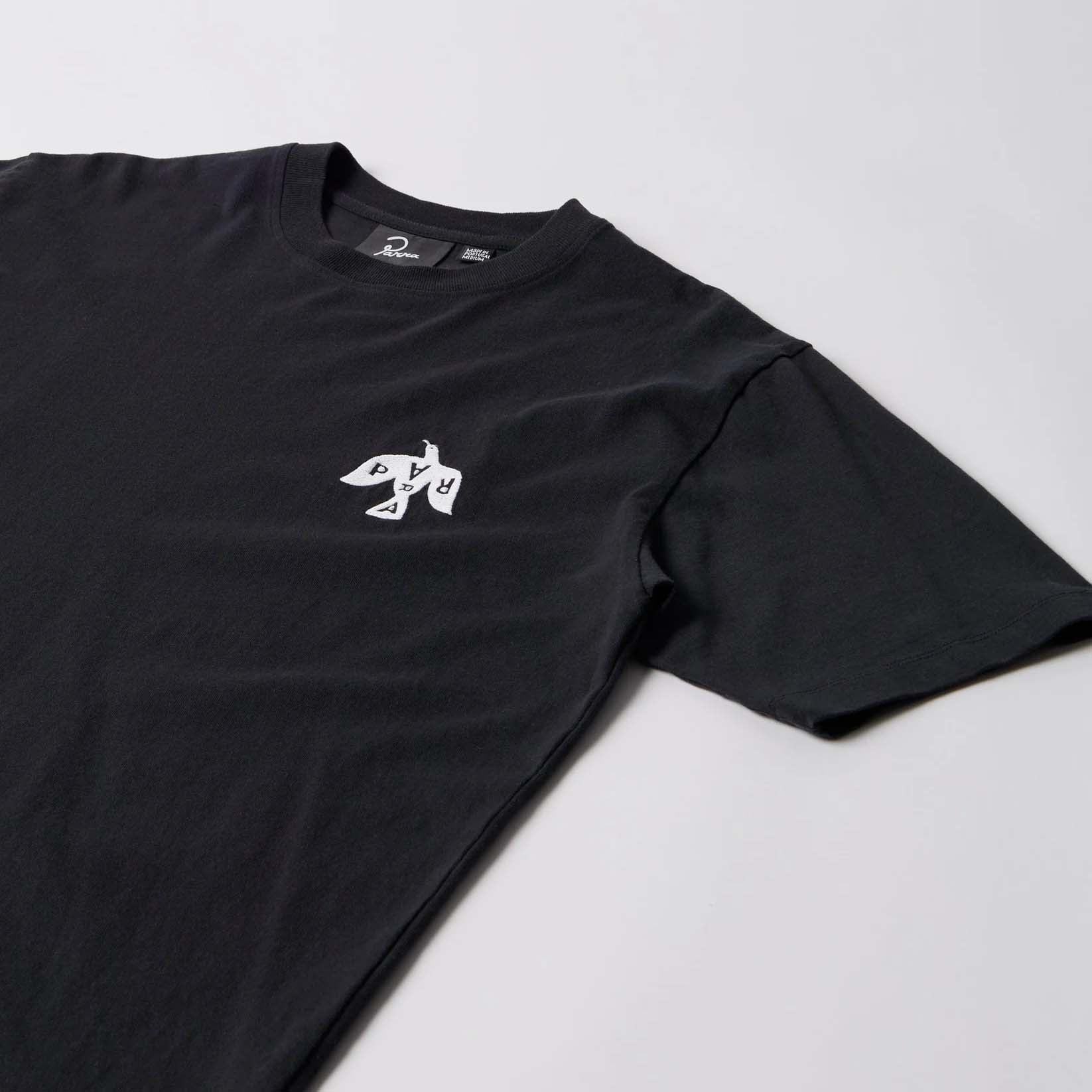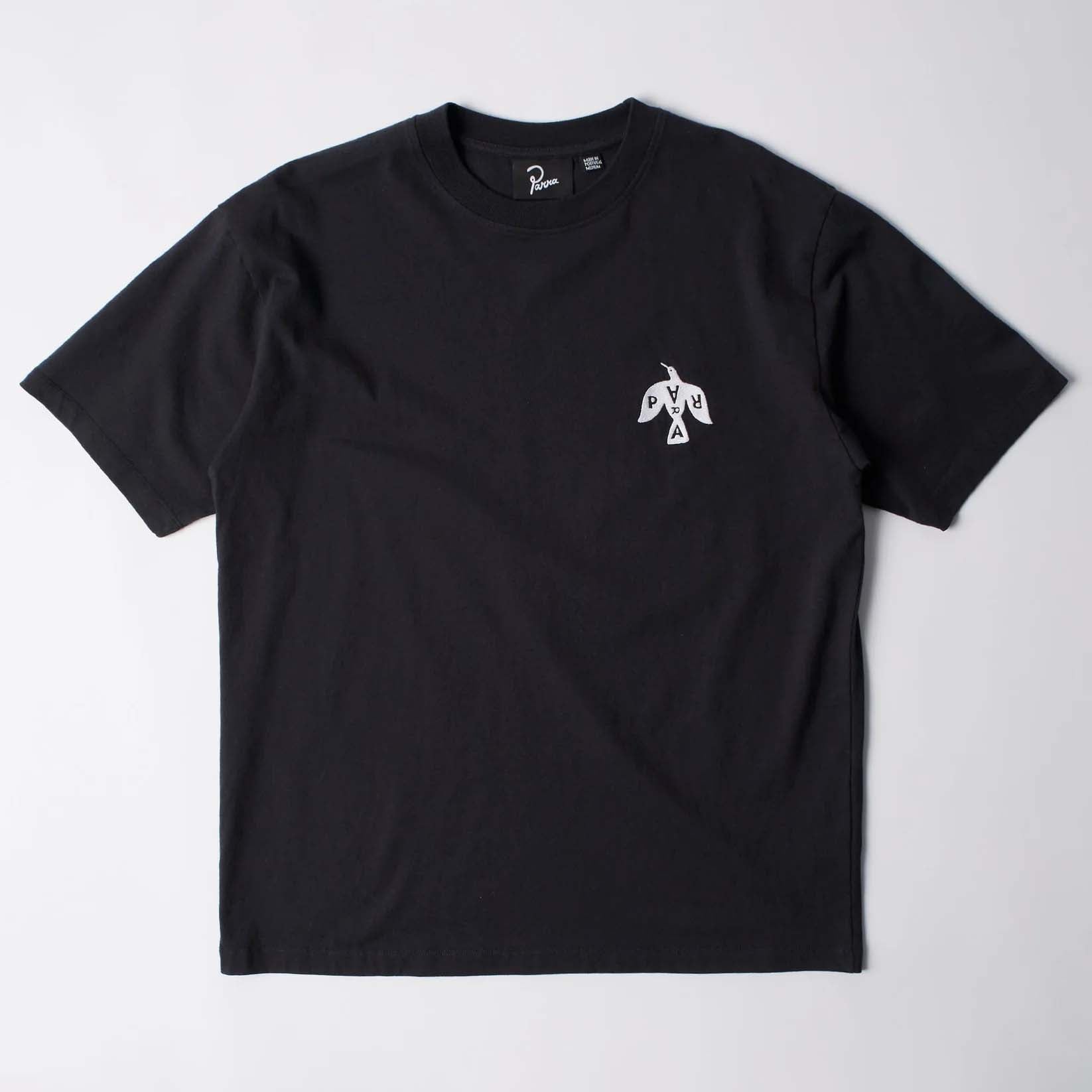 Crow logo embroidery on our custom boxy by Parra t-shirt.