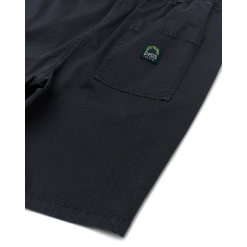 Relaxed fit beach short with brand label on back pocket, elasticated waist with internal drawcord, cotton and elastane twill fabrication with a heavy enzyme stone wash.