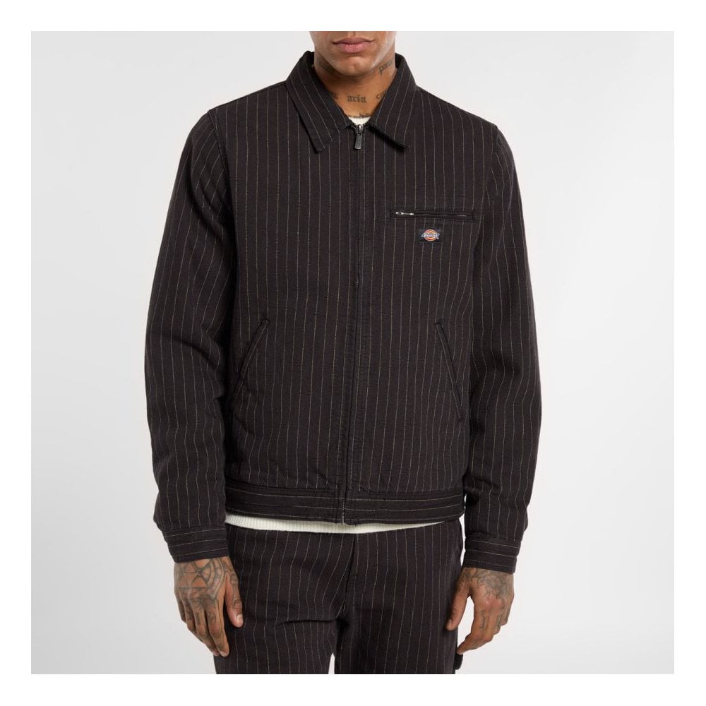 With its regular fit and yarn-dyed pinstripe cotton, the Service Painter Jacket is a fresh new take on a classically cut jacket. It blends style with function through angled welt pockets, a herringbone lining, metal zips and metal snaps at the waist and cuffs. A zipped welt pocket on the left chest completes the loo