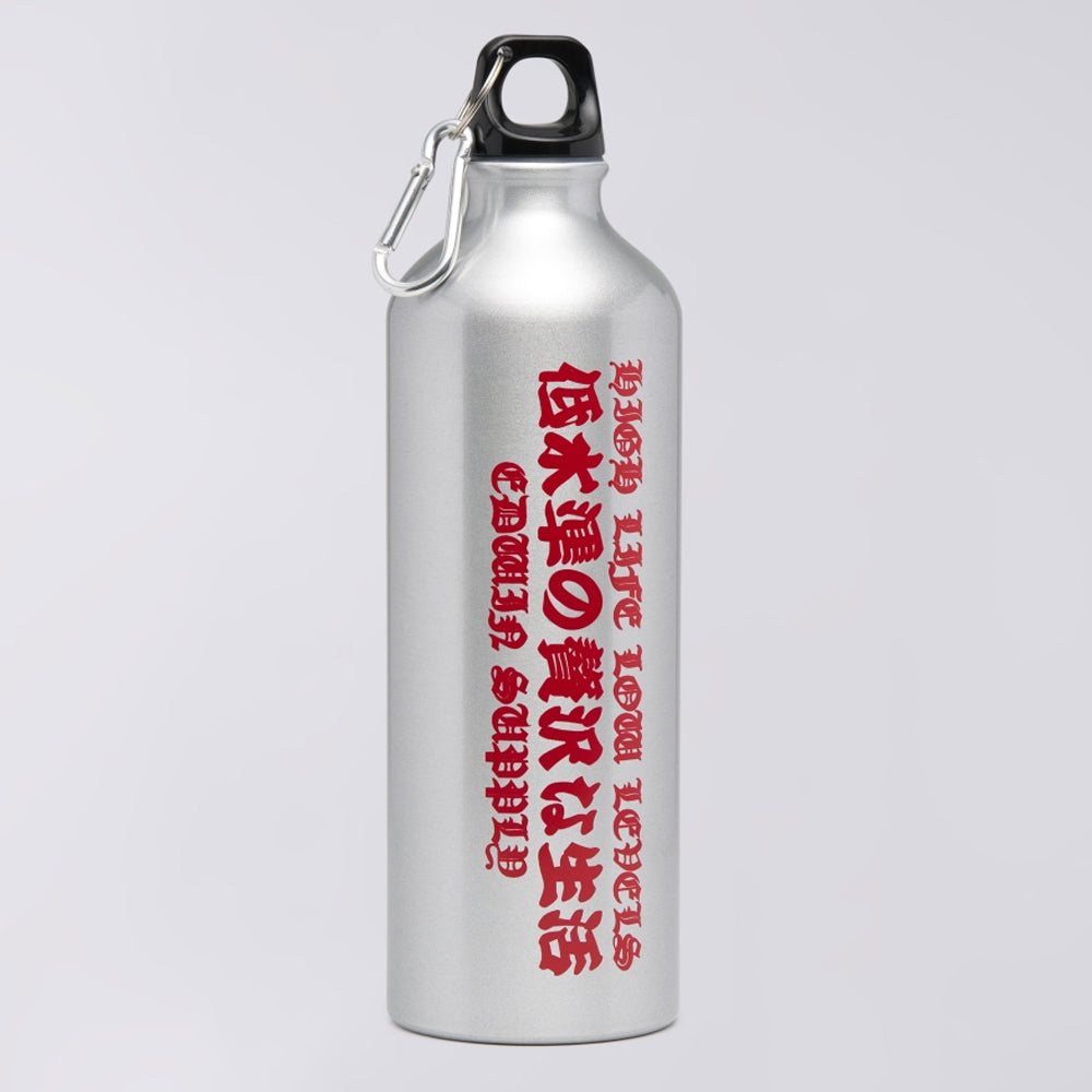 The Aluminium Water Bottle is crafted from pure aluminium. Presented in Silver, it features a distinctive Red EDWIN Design print. It's fitted with a carabiner so you can hang it wherever you like. Only suitable for cold or temperate liquids.