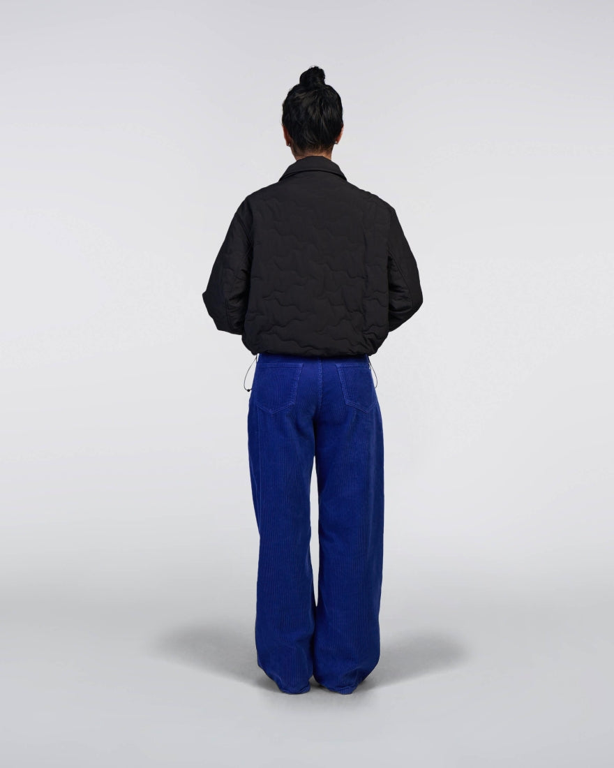 The EDWIN W' Rory Padded Jacket is a boxy fit style, perfectly designed to complement a feminine silhouette. Made from 95g/m² WR crinkled plain weave (100% polyamide), it features a personalized metal zip front closure, visible design quilting, two side pockets, an inner drawcord at the waistband, elasticated cuffs, and an EDWIN label on the side.