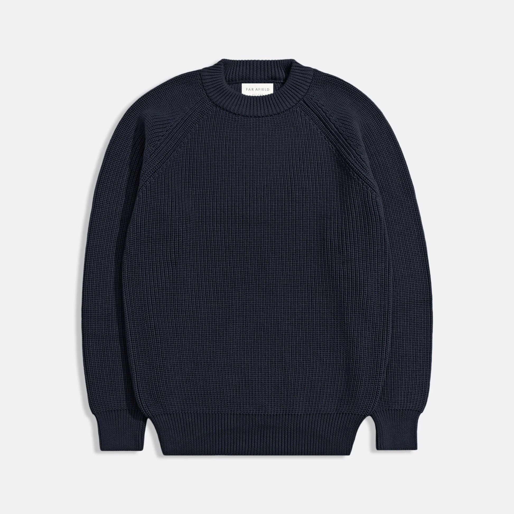 The Herbert Raglan Knit in Navy offers a refined balance of comfort and durability, crafted from soft organic cotton for a substantial, midweight feel with raglan sleeves creating a relaxed shoulder line for ease of wear. Finished with ribbed trims at the neck, cuffs, and hem, this knit is tailored for everyday use, delivering a timeless silhouette that adapts effortlessly to your wardrobe needs.