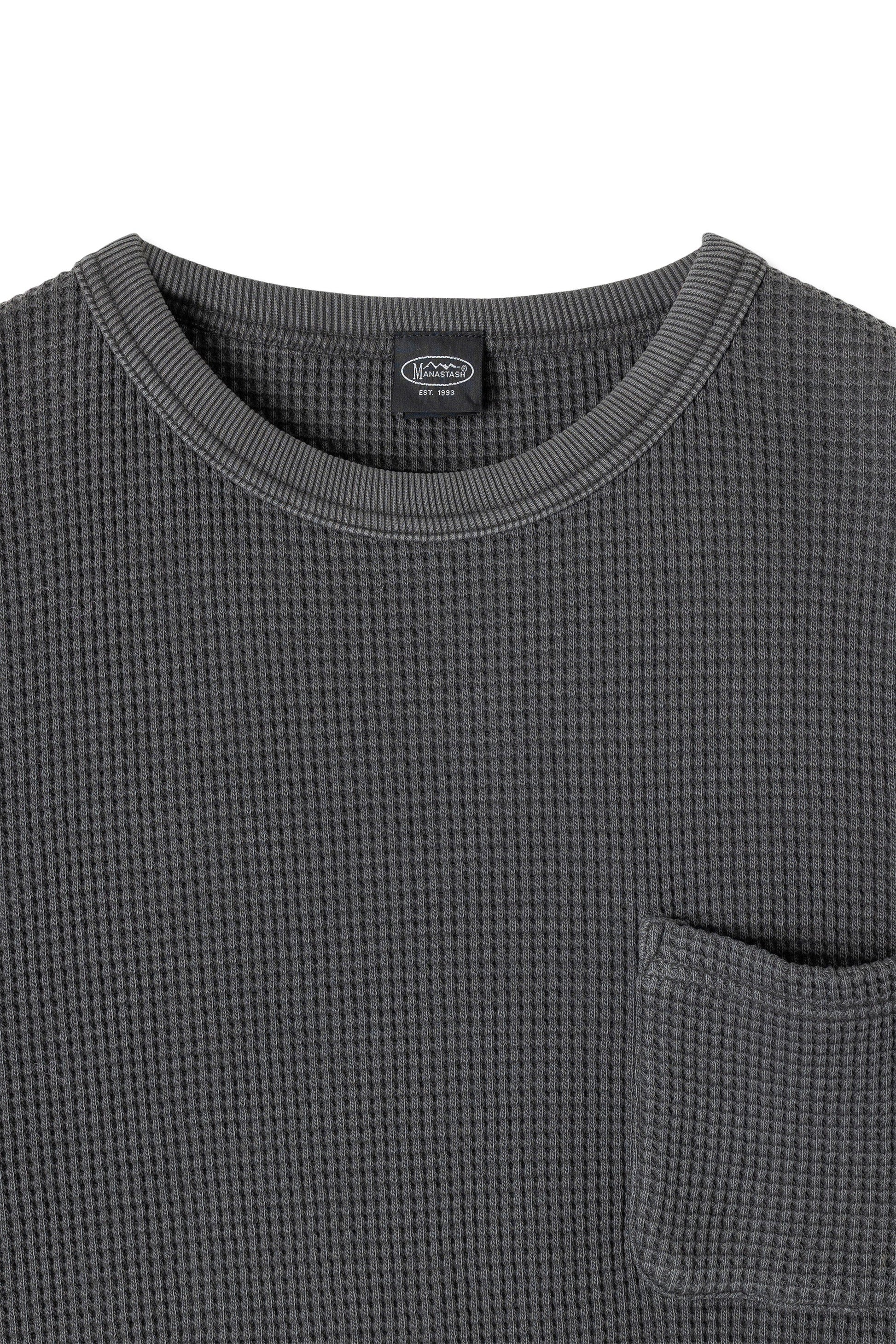 One of Manastash's best sellers, Heavy Snug Thermal L/S Tee, is back with new fall colors! It can be worn as a layer and will be an essential item during fall/winter. Pigment dye offers a natural appearance and perfect fade over time. Details: knit rib cuffs and hem, a chest pocket, and a small label on the sleeve. - Made in China - 100% Cotton