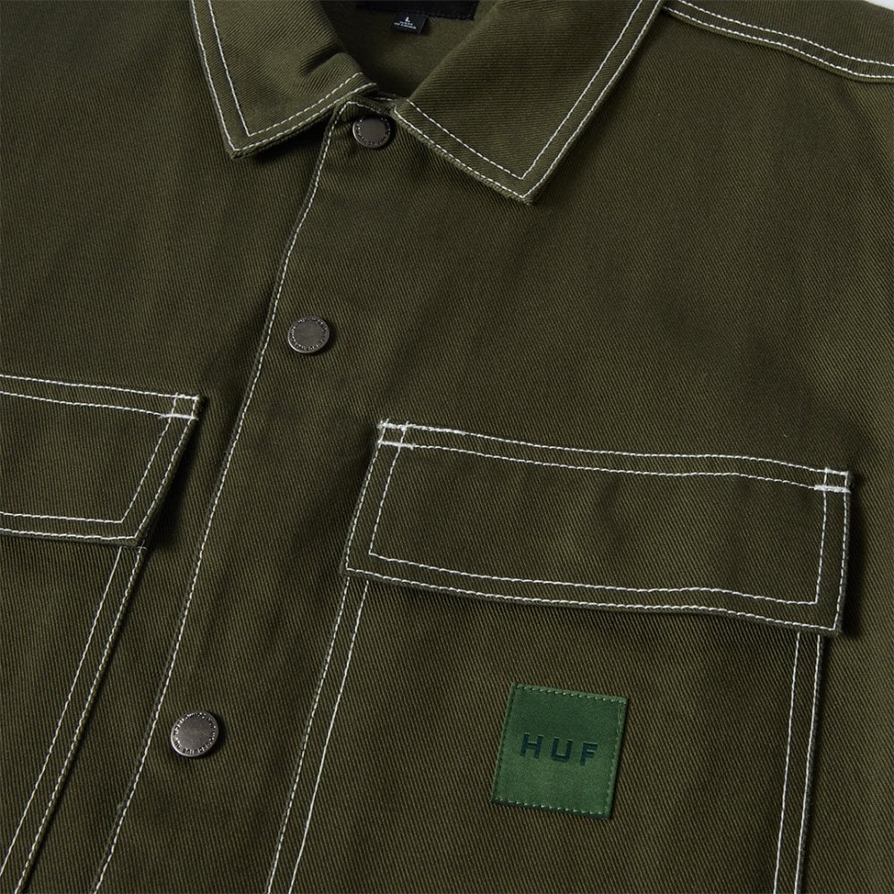 Offered in classic colors with pops of contrast stitching and designed with HUF team rider Mason Silva, the Mason Shacket transforms French workwear with his personal touch. Built with a cotton twill construction, “Mâ stitched details, and photo labels by Mason, the Mason Shacket combines utility design with his signature aesthetics.