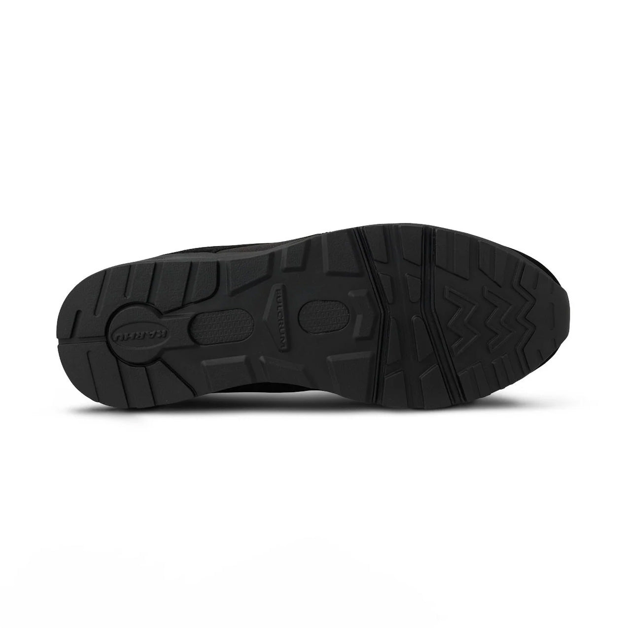 The KARHU Fusion 2.0 in Jet Black / Nine Iron revives the 1996 classic with enhanced durability and contemporary comfort. Crafted with suede overlays and water-repellent ripstop, it balances ruggedness with style. Features like ballistic nylon, reflective rope laces, and a pull tab ensure functionality and safety. Designed for all-day wear, this updated silhouette offers a refined blend of heritage design and modern performance.