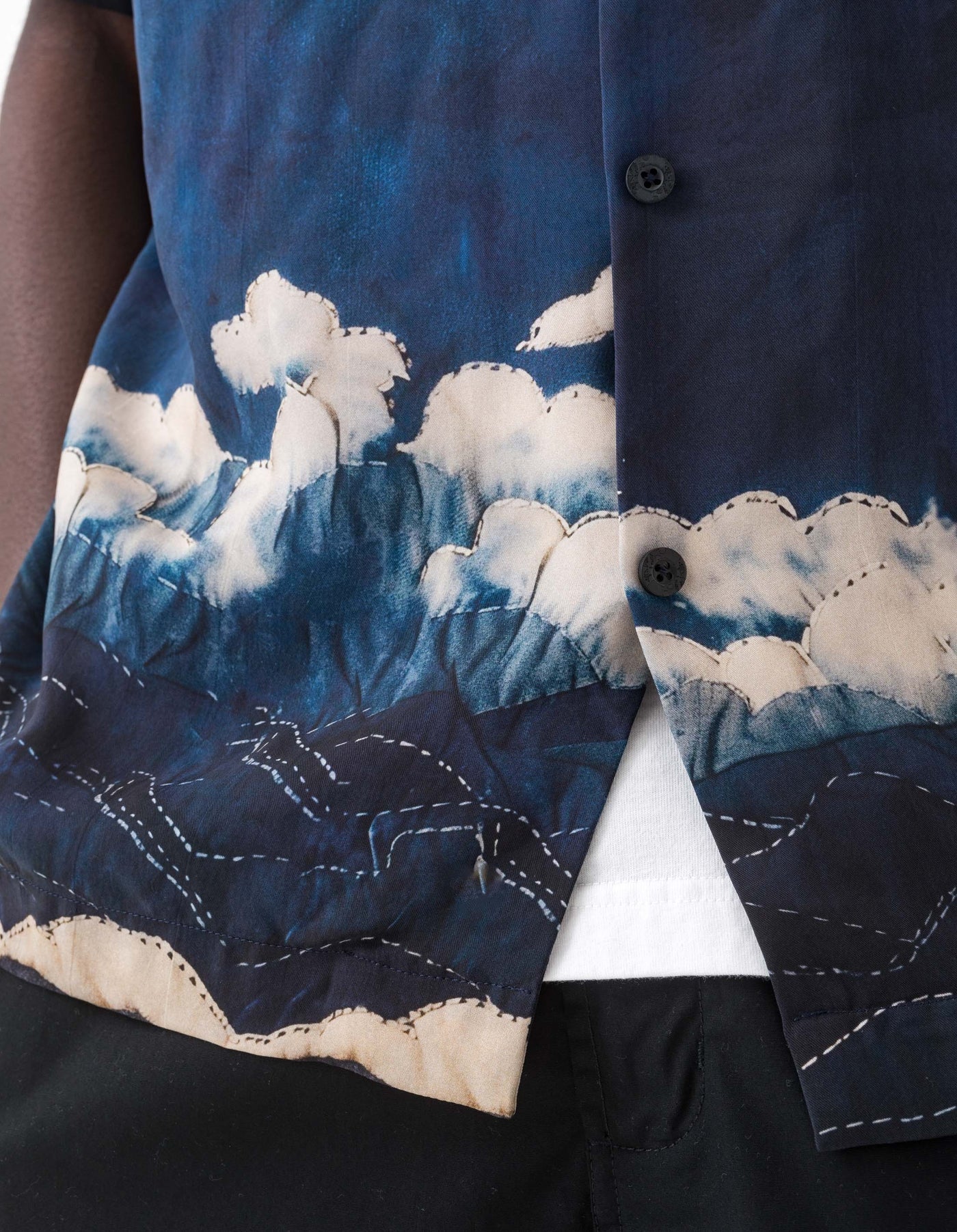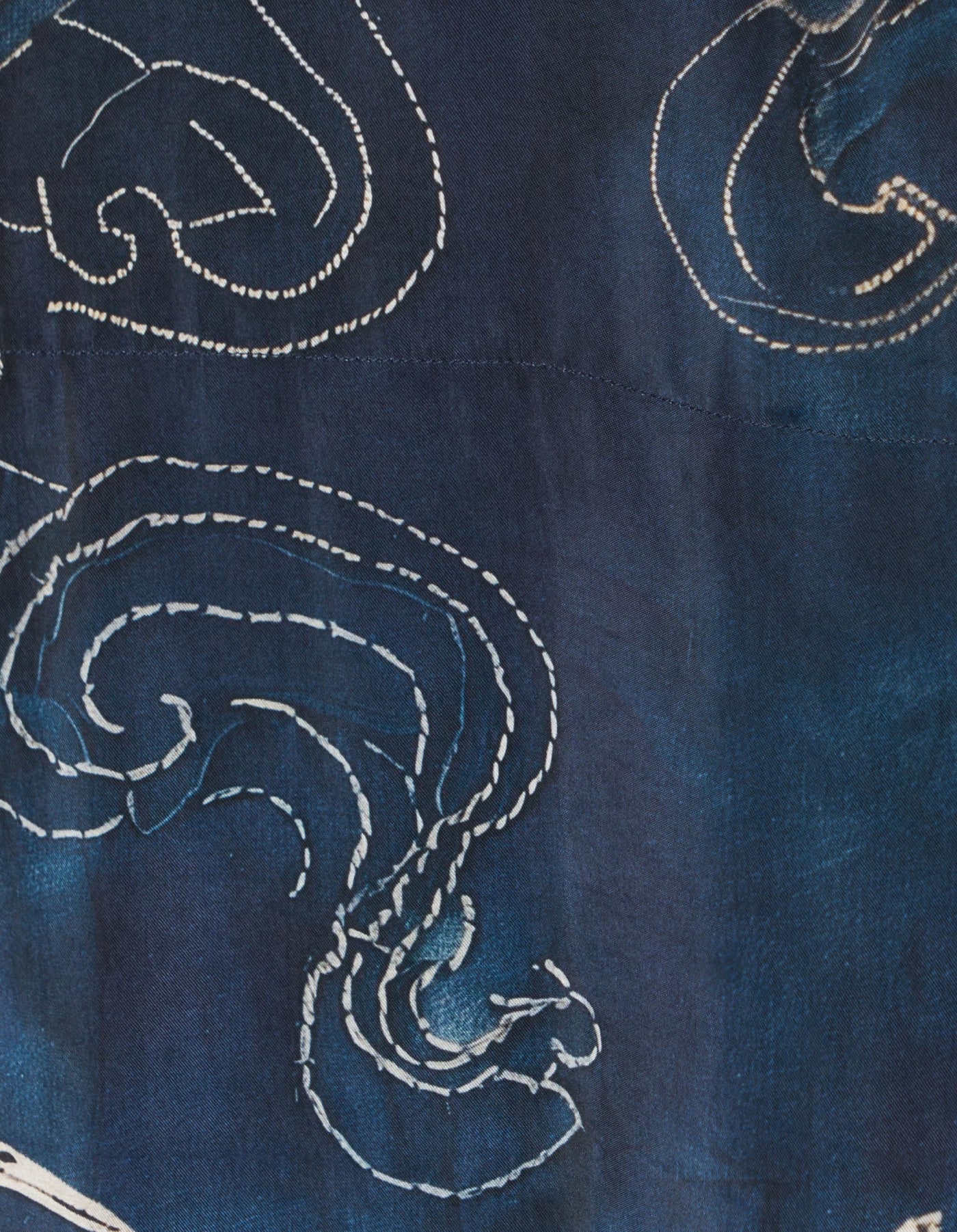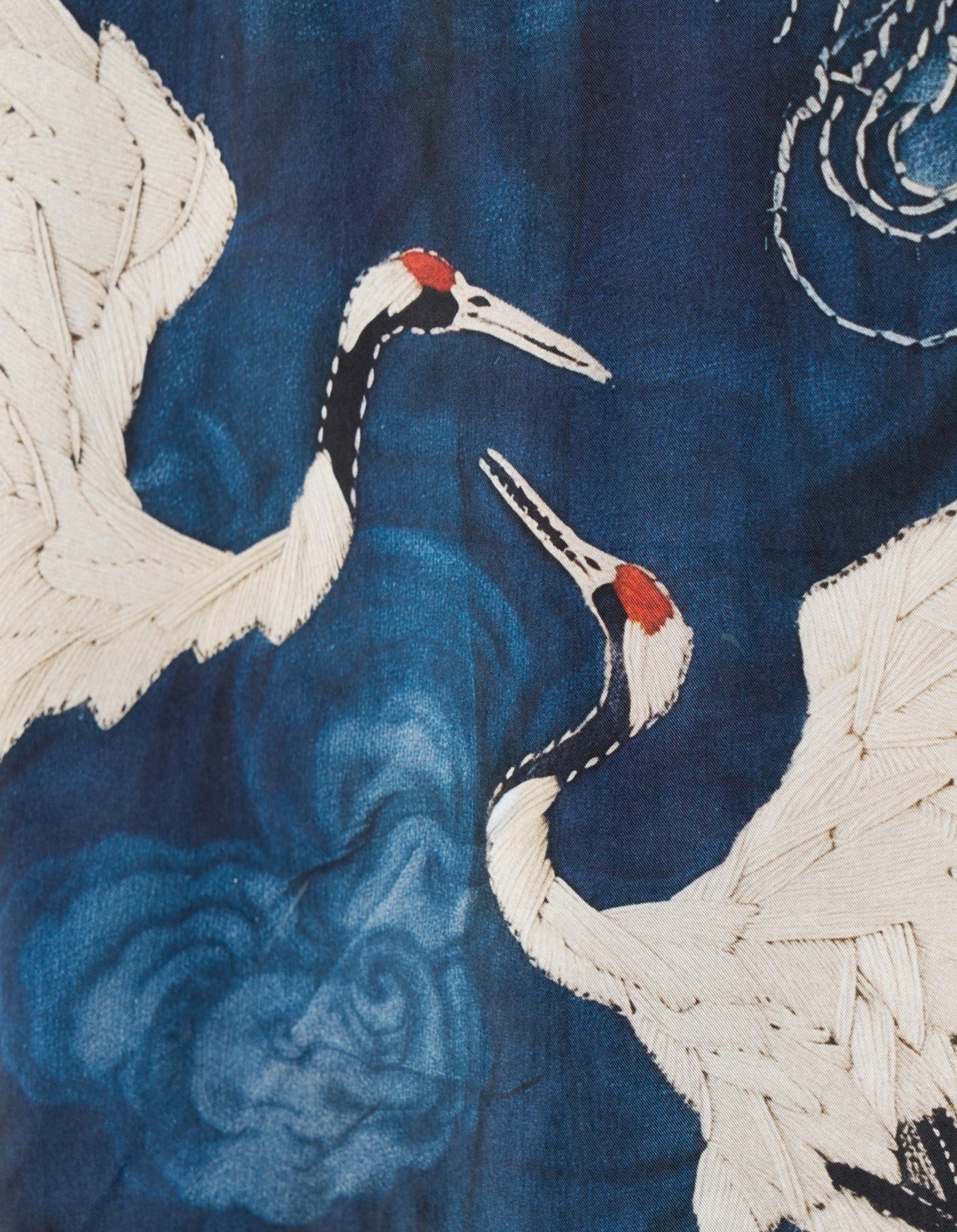 Lightweight cupro shirt with a mimic stitch Boro Crane all-over print. Cut to waist length in a relaxed fit.