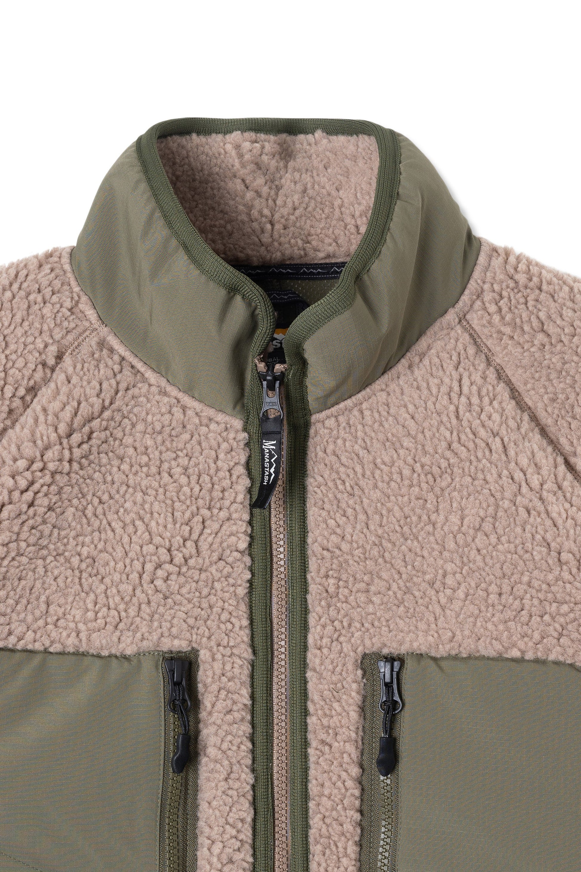 The Manastash Mt. Gorilla Jacket '25 in Moca features a three-layer waterproof fleece construction with boa, a windproof membrane, and mesh lining to keep you warm and dry while letting moisture escape. Its loose fit, edge piping, capture 90's style. Made from 100% polyester and designed to block wind effectively, this jacket combines comfort and classic looks for everyday wear.