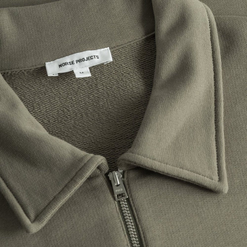 Norse Projects Ketel Relaxed Organic Norse Logo 1/2 Zip - Sediment Green