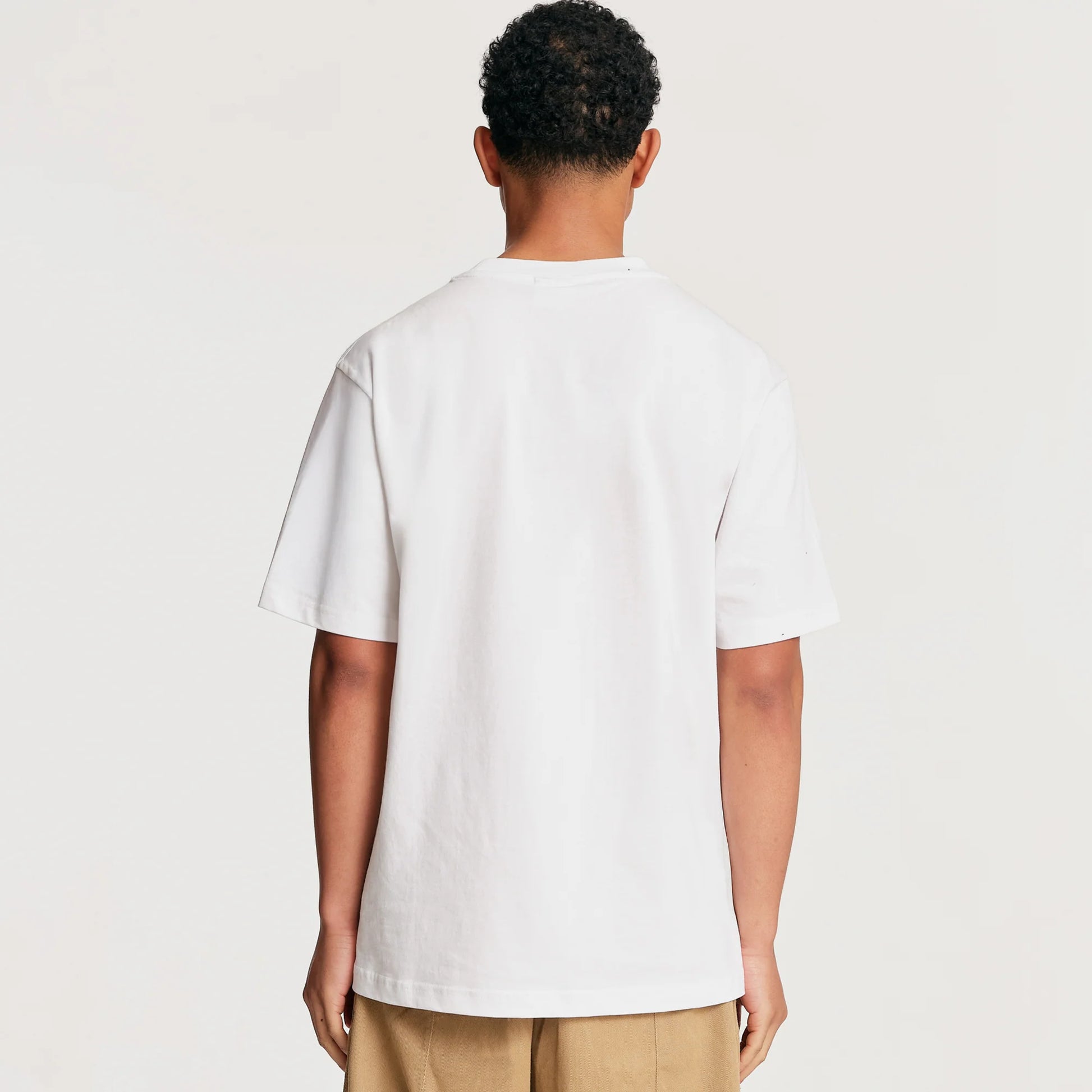 The Beacon T-Shirt in White is a timeless wardrobe essential crafted from GOTS-certified organic cotton. This classic short-sleeve tee features a structured ribbed crewneck for all-day comfort and is finished with a printed graphic on the chest.