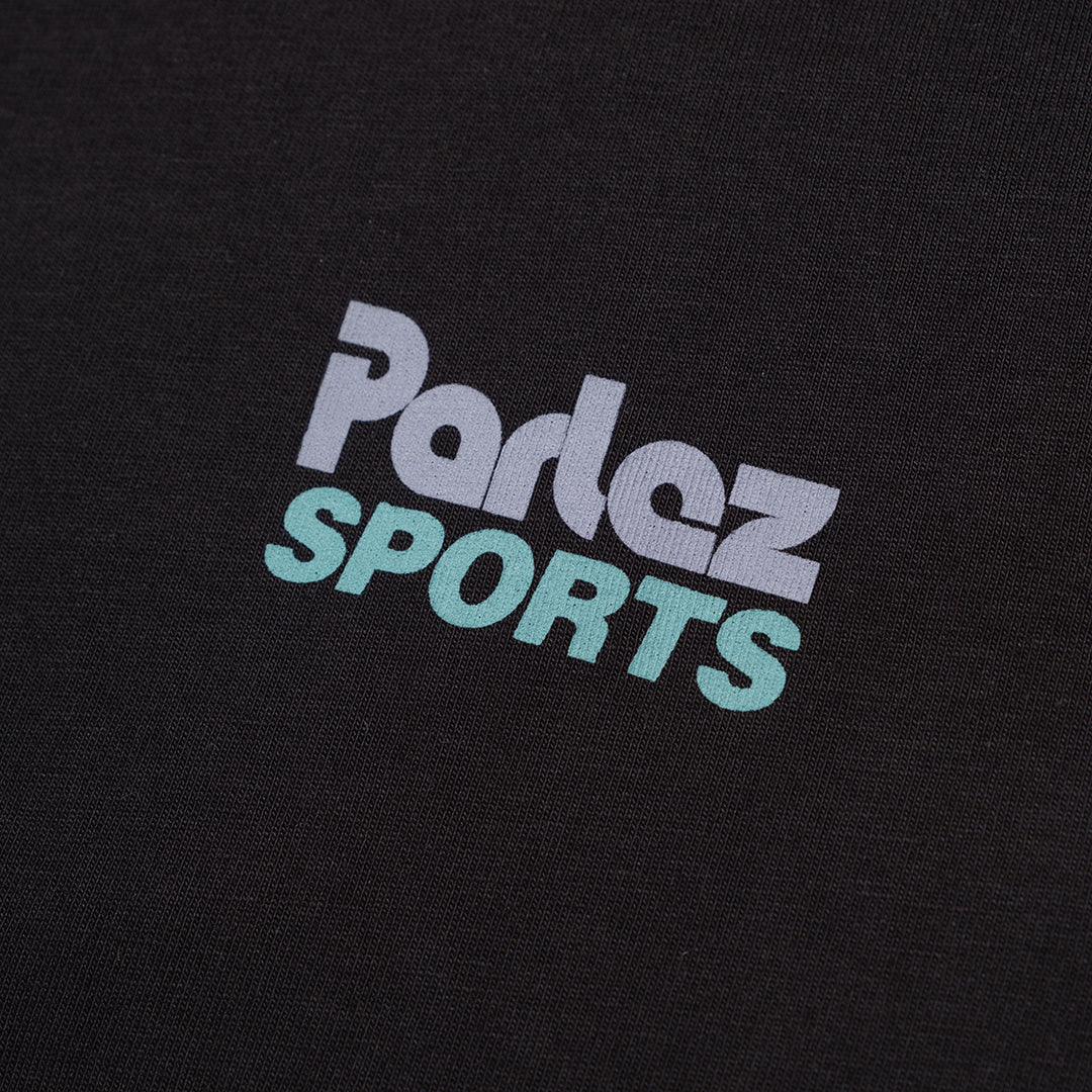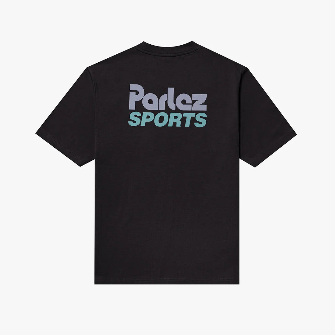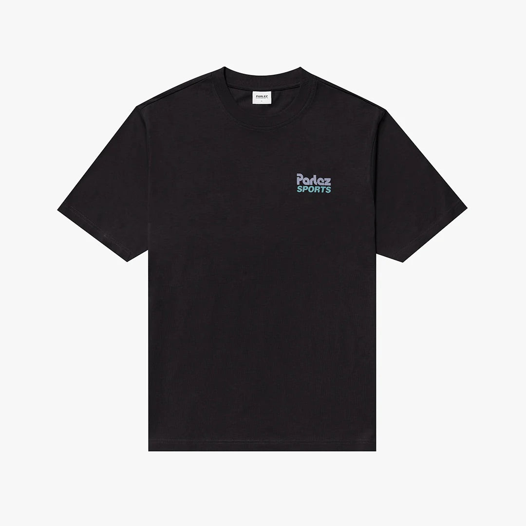 Burbank T-Shirt in Black – a timeless essential crafted from GOTS Certified organic cotton. This short-sleeve crewneck features a soft ribbed neckline, small chest logo, and striking back design.