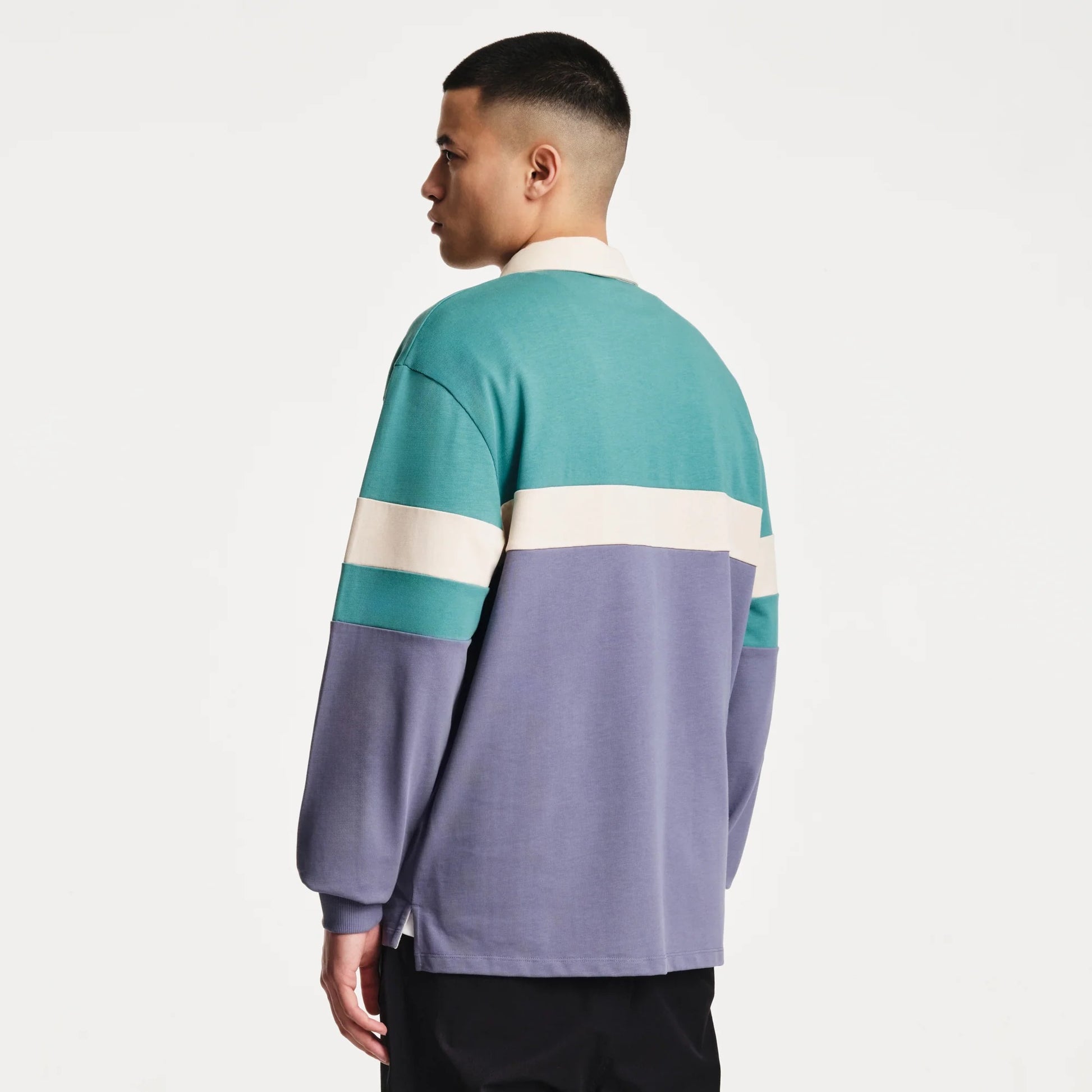 The Plaza Rugby in Purple Haze combines classic rugby styling with sustainable craftsmanship. Made from 100% organic cotton, this long-sleeve shirt features bold colour-block panelling and a structured cotton twill collar with a three-button placket. Ribbed cuffs provide a secure fit, while embroidered chest branding adds a refined finishing touch..
