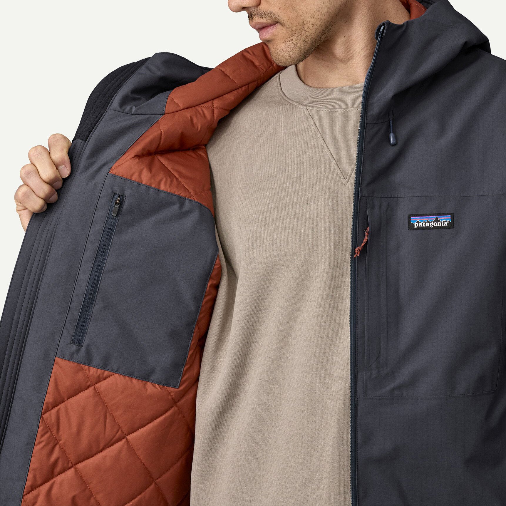 Stay warm and dry with the Patagonia Men's Windshadow Jacket in Forge Grey. Its waterproof, 100% recycled polyester ripstop shell and Thermogreen™ insulation provide reliable protection against cold and wet weather. Adjustable hood, hem, and cuffs ensure a comfortable fit, while multiple pockets keep your essentials close. Made in a Fair Trade Certified™ factory, this jacket is built for everyday wear in stormy conditions.
