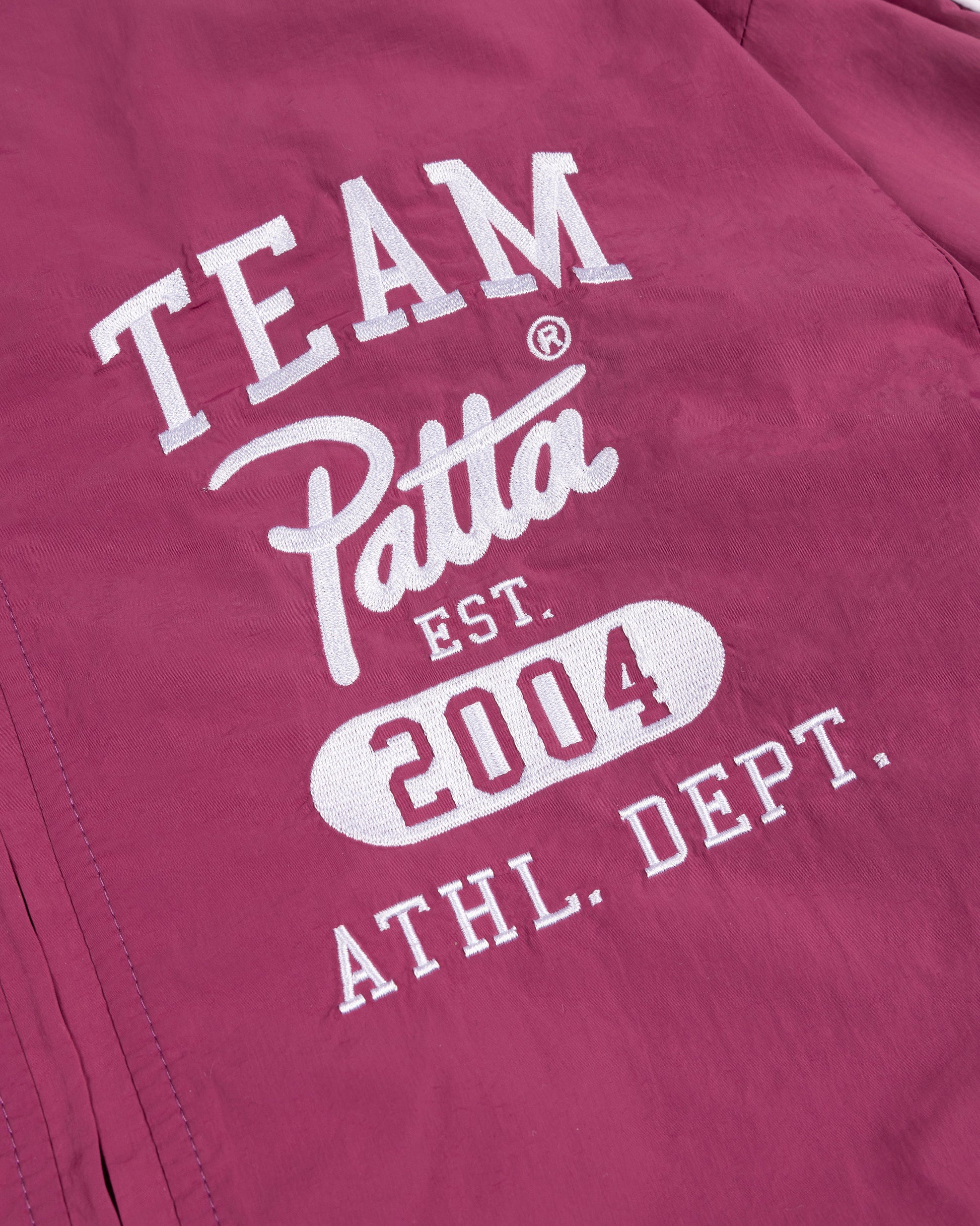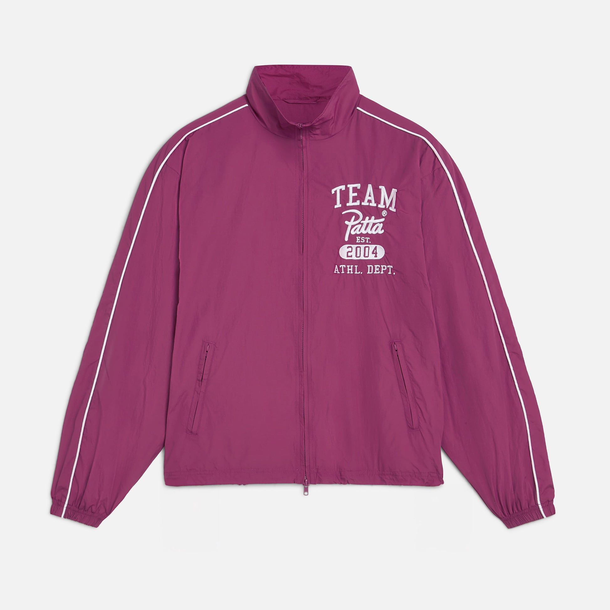 - This track jacket features embroidered chest artwork and a drawstring waist for a perfect fit. It has elastic cuffs and a Patta branded YKK front zipper. Two zippered side pockets provide secure storage. The jacket is lined with breathable 100% polyester mesh, while the outer fabric is also 100% polyester for durability.