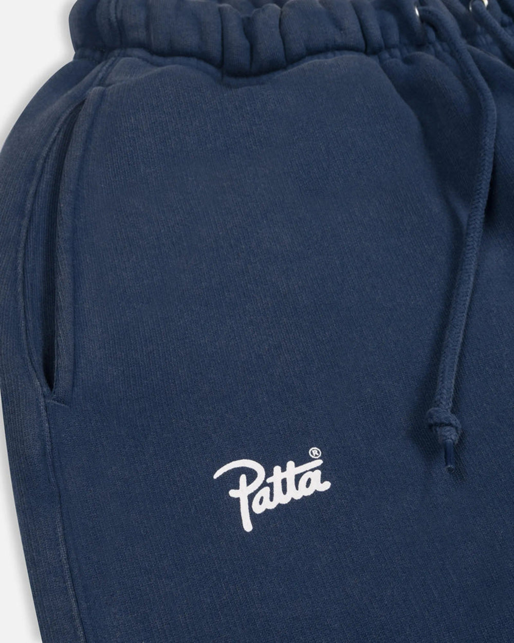 The Patta Classic Acid Washed Straight Leg Jogging Pants in Estate Blue offers a comfortable fit with a soft blend of 64% cotton and 36% polyester sweat fleece. Their straight-leg design provides a relaxed, casual look perfect for everyday wear. Durable and cozy, these pants are ideal for lounging or activities.