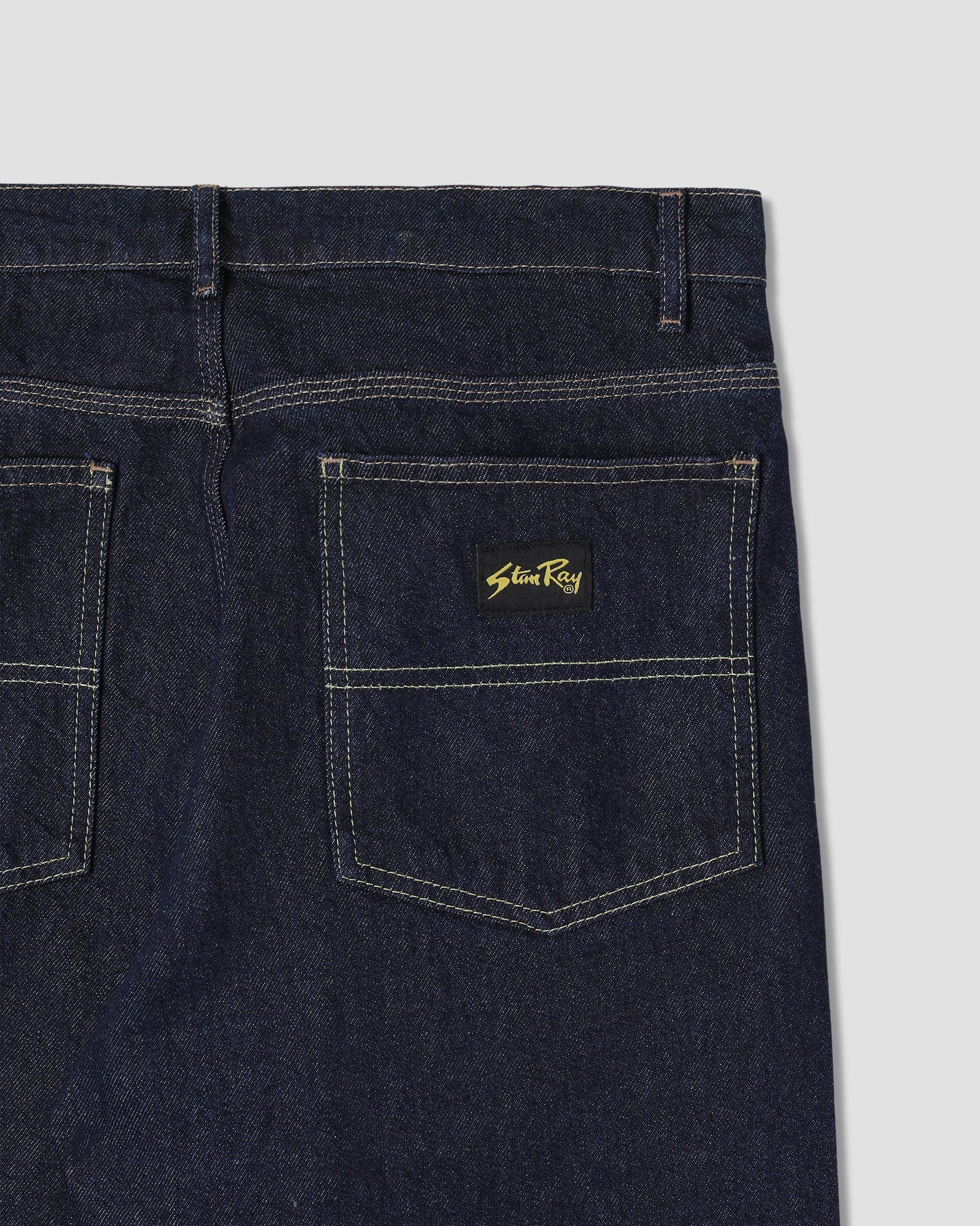 The Stan Ray Standard 5 in Single Rinse Denim offers a classic fit with a sraight leg and mid-rise waist. Made from 100% cotton, these jeans feature durable workwear details like chain-stitched seams, bar-tacked stress points, and triple-needle back yoke seams. With riveted front pockets, spade-style back pockets, and a zip fly, they combine quality with everyday comfort.